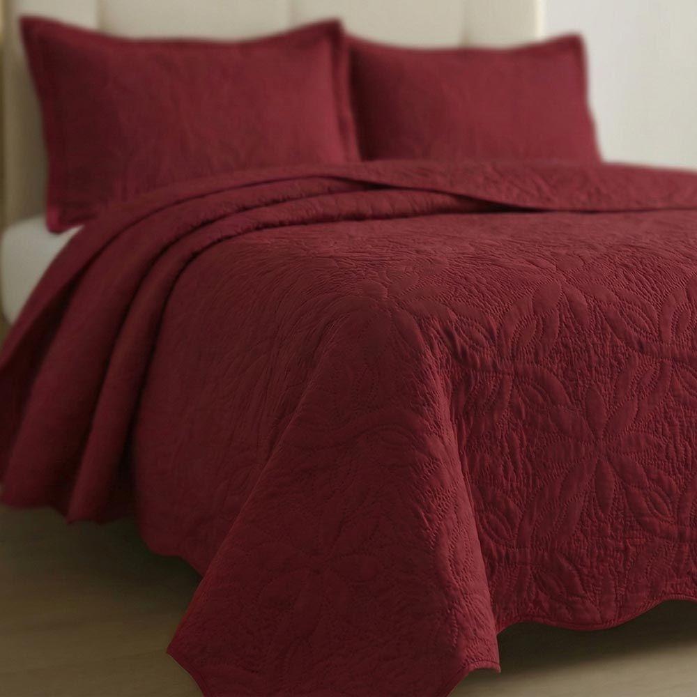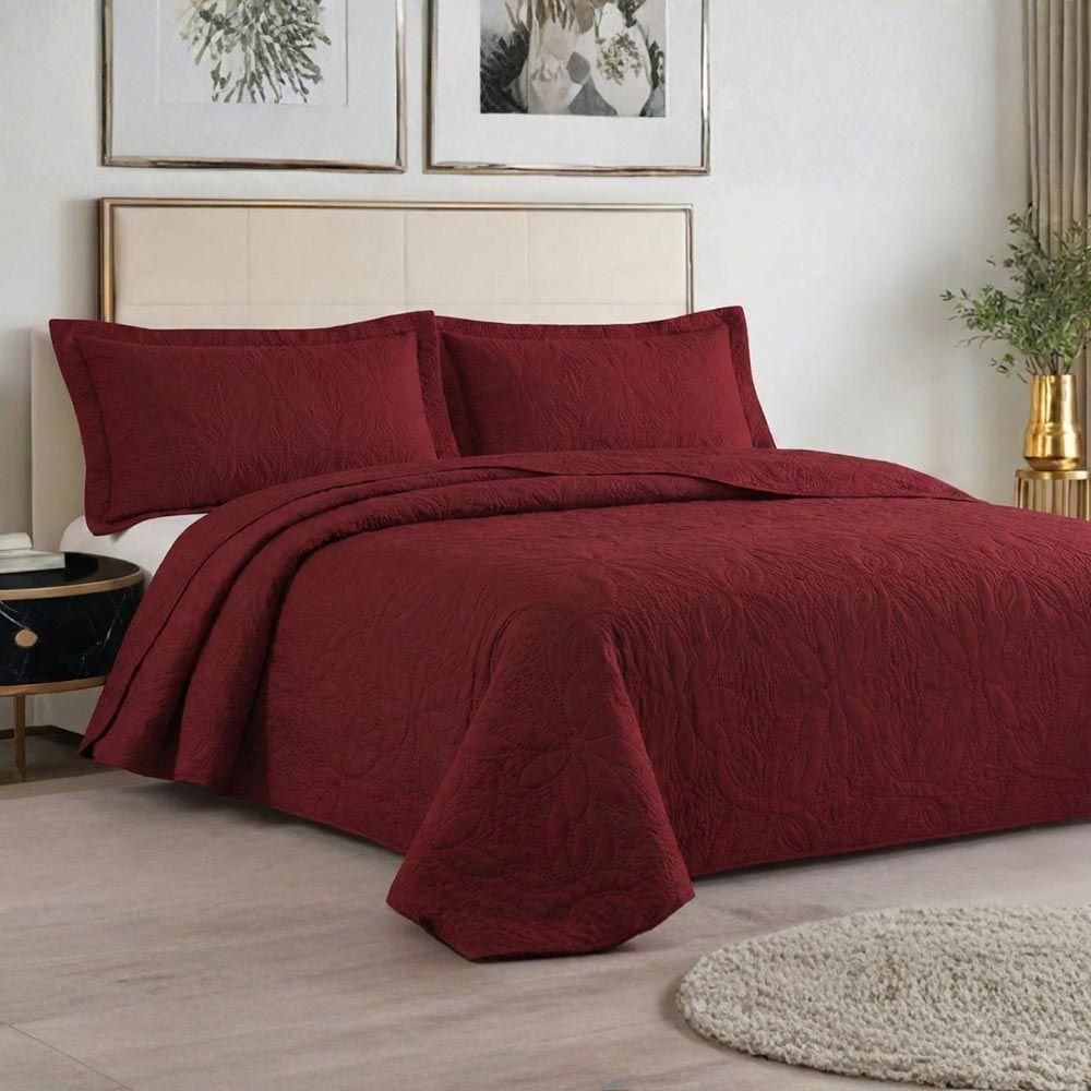 Kit Cobre Leito Colcha Charlote King 3 Peças Dupla Face Liso Classic - Vermelho - 100% Poliéster
