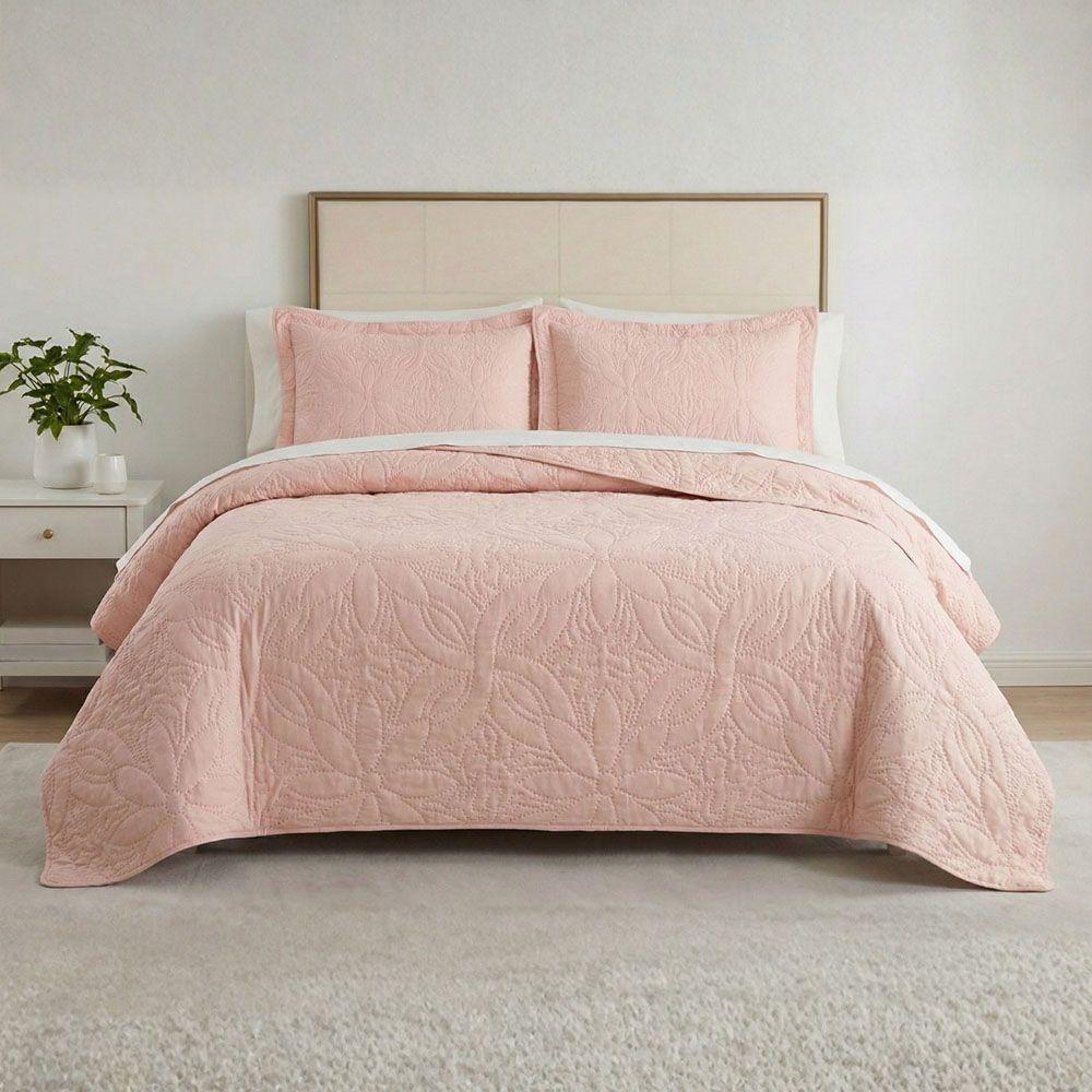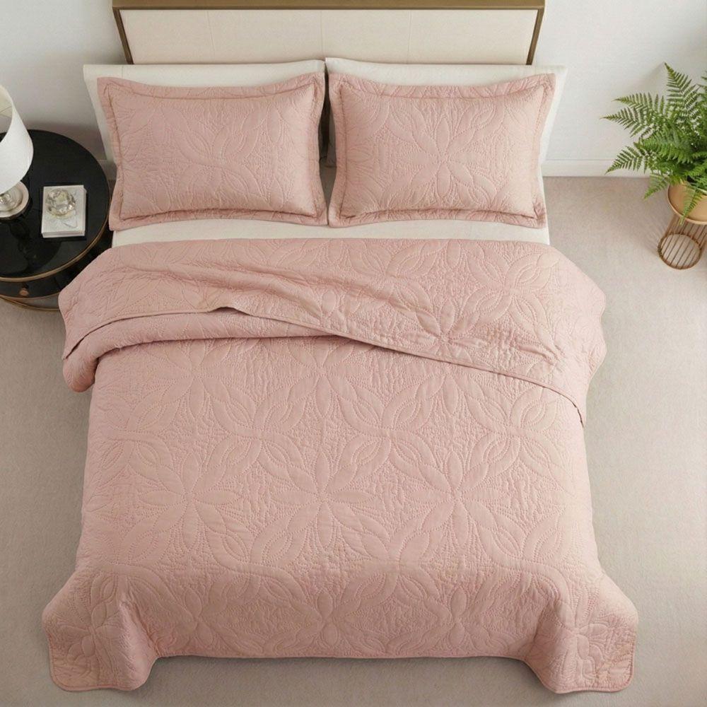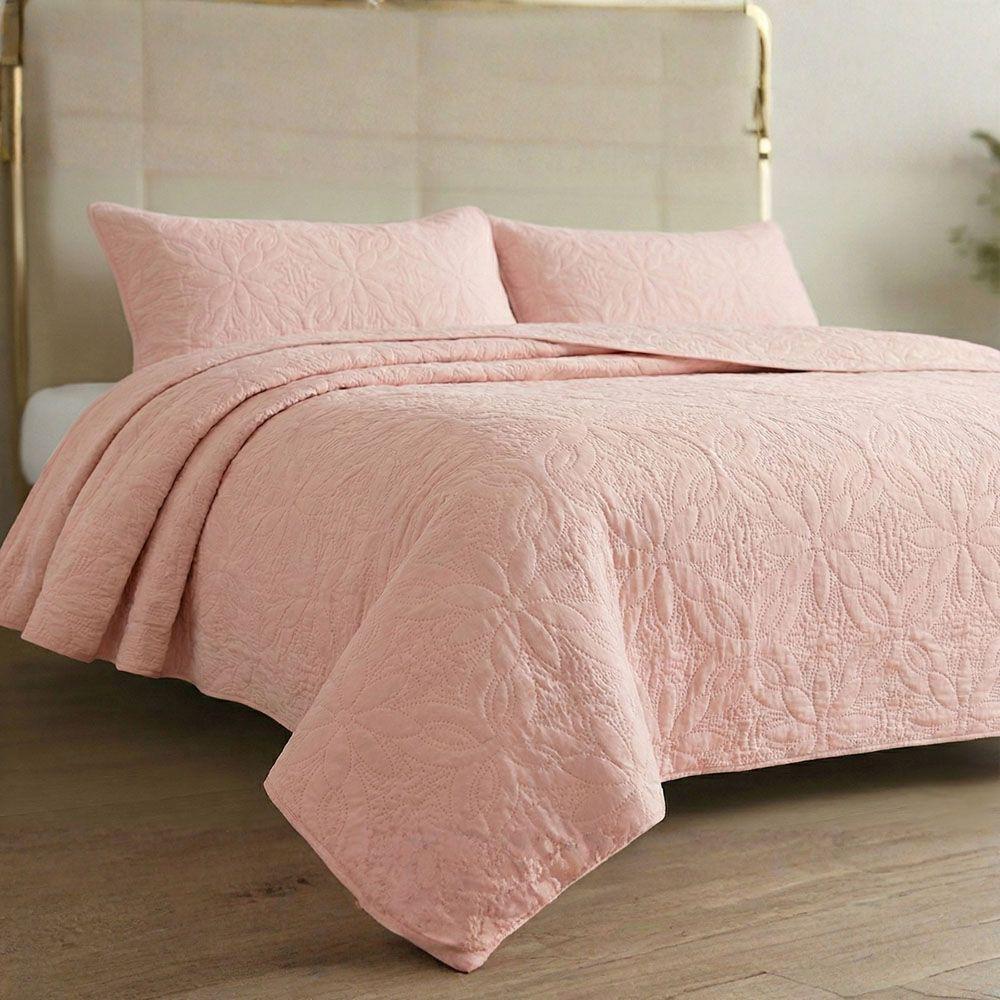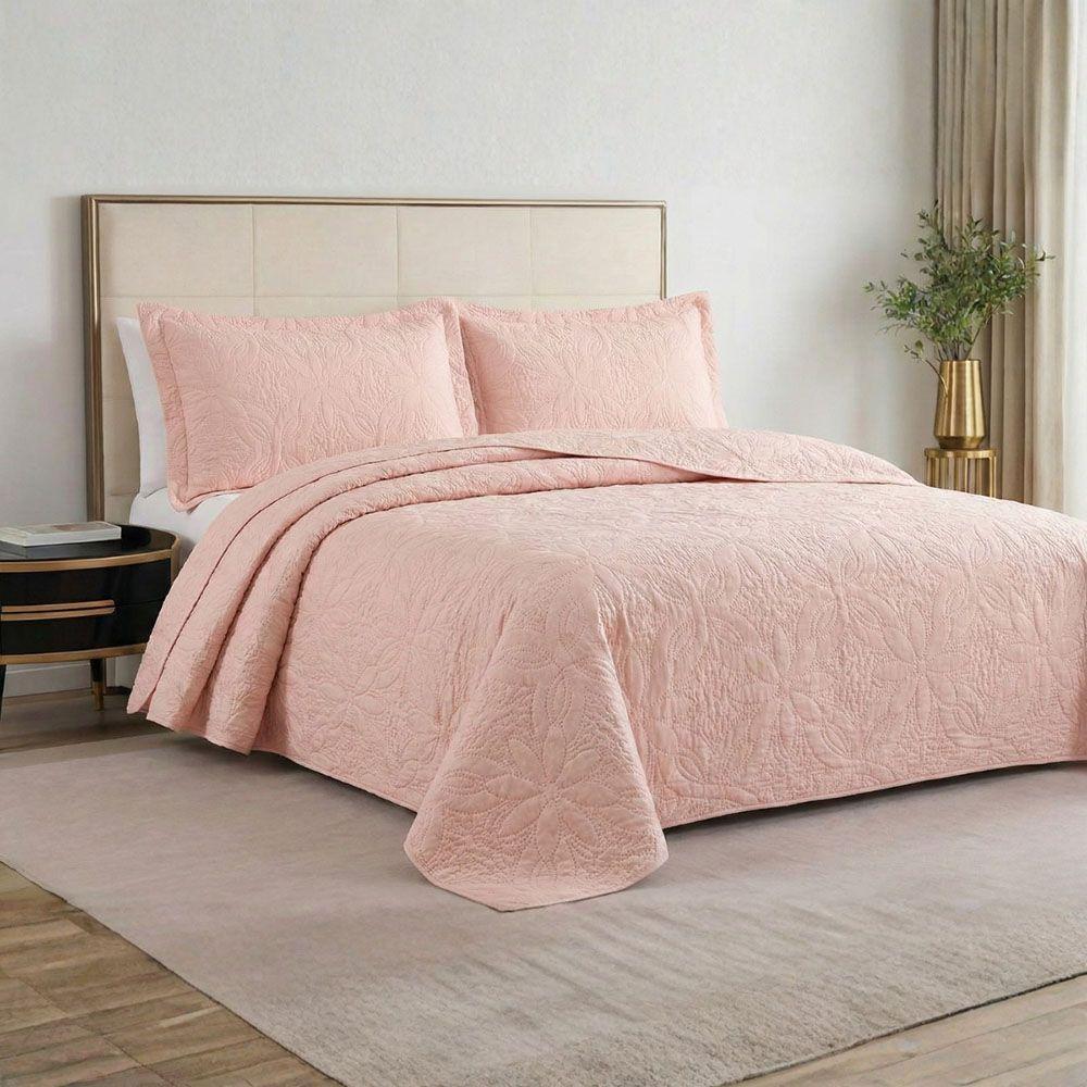 Kit Cobre Leito Colcha Charlote King 3 Peças Dupla Face Liso Classic - Rose - 100% Poliéster