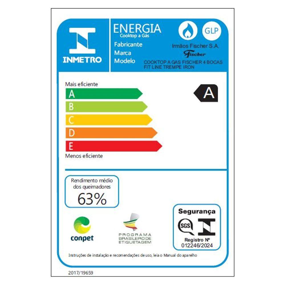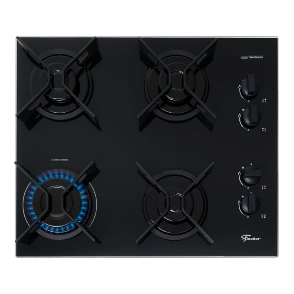 Cooktop A Gás Fischer 4 Bocas Fit Line Trempe Iron Preto Bivolt