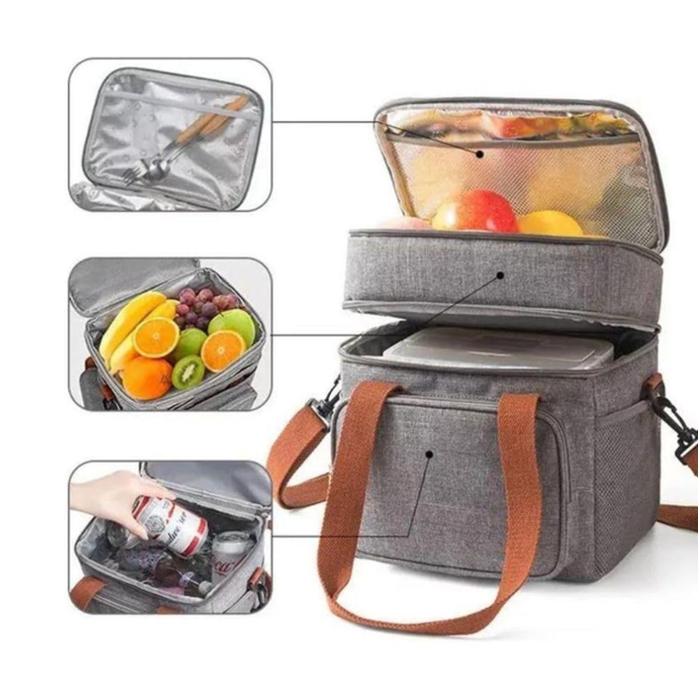 Bolsa Termica Marmita Lancheira Multiuso Alça Trabalho Passeio Academia Dois Compartimentos Cor:azulAnúncio: Bolsa Térmica Marmita Lancheira MultiusoMantenha Seus Alimentos Frescos com Estilo!Apresentamos a Bolsa Térmica Marmita Lancheira Multiuso, a solução perfeita para quem busca praticidade e organização no dia a dia! Ideal para trabalho, passeios, academia e muito mais!Caracteristicas do ProdutoDesign PráticoDois compartimentos espaçosos que se adaptam às suas necessidades. Guarde sua marmita e lanches separadamente!Conforto ao Transportar:Alça de ombro ajustável para maior conforto. Perfeita para levar em qualquer lugar!Isolamento Térmico Superior:Material de alta qualidade que mantém seus alimentos quentes ou frios por mais tempo.Versatilidade:Ideal para almoços no trabalho, piqueniques em família, treinos na academia ou passeios com os amigos.Fácil de Limpar:Material resistente e lavável, facilitando a limpeza após o uso.Especificações:Dimensões: 26x18x28cmMaterial: ecido Oxford antiágua, algodão pérola, filme de alumínioCores Disponíveis: Azul, Cinza, PretoContém:1 Lancheira Térmica