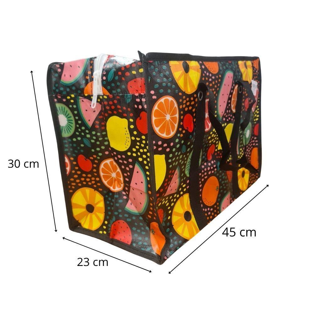 Bolsa Mala Sacola Feira Viagem Armazenamento Multiuso Dobrável Em Lona Impermeável Com Ziper Modelo:5Bolsa Sacola de Viagem Dobrável em Lona Impermeável – Grande Capacidade, Estampas Diversas e Muita Resistência!A solução ideal para quem precisa de espaço, praticidade e resistência!Essa bolsa sacola multiuso é fabricada em lona plástica reforçada e impermeável, perfeita para viagens, mudanças, organização ou transporte de roupas, calçados, brinquedos, mantimentos e muito mais.Destaques do Produto:Material resistente e impermeávelFechamento com zíper reforçadoAlças firmes para transporte com segurançaDobrável – fácil de guardarIdeal para viagens, feiras, mudanças e armazenamentoEstampas modernas e coloridas (enviadas conforme estoque)Dimensções Aproximadas:Altura:30cmLargura:45cmProfundidade: 23cmIdeal para:Viagens curtas ou longasTransporte de roupas, cobertores e calçadosOrganização de armários e guarda-volumesMudanças e armazenamento em geralUso em feiras e compras em atacadoItem incluso:1 Bolsa Sacola em Lona Impermeável