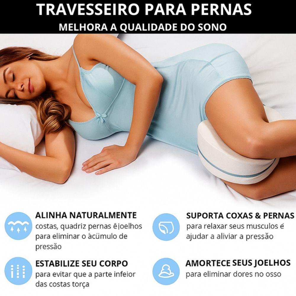 Travesseiro Ortopédico Para Joelho Alinhamento Natural Da Coluna Alivio Para Costas, Quadris Melhora Qualidade De SonoTravesseiro Ortopédico para PernasRestaure o alinhamento natural da sua coluna e alivie a pressão desconfortávelProjetado ergonomicamente para proporcionar apoio e conforto durante toda a noite, ajuda a manter o alinhamento correto da coluna, oferecendo alívio para as costas, quadris, joelhos e pernas.Feito com espuma viscoelástica (memory foam) de alta densidade, mantém sua forma e proporciona um toque macio e agradável.Benefícios:Apoio para as costas e quadris – melhora o alinhamento e reduz desconfortos.Melhor qualidade de sono – promove uma postura mais natural e relaxante.Conforto para os joelhos – reduz a pressão entre as pernas.Espuma de memória ventilada – mantém a temperatura agradável durante o sono.Capa lavável e respirável – fácil de remover e higienizar.Design Inteligente e ErgonômicoFormato anatômico em “meia-lua” que acomoda naturalmente as pernas e joelhos.Permite movimentos livres durante o sono, mantendo o conforto em qualquer posição.Oferece suporte completo dos quadris até os tornozelos.Fácil de ManterCapa respirável e lavável.Espuma durável que mantém o formato mesmo após longos períodos de uso.Especificações TécnicasMaterial: Espuma de memória (Memory Foam)Capa: Tecido respirável removívelDimensões aproximadas:25 × 20 × 15 cmIdeal para:Pessoas que sofrem com dores lombares, desconfortos nos quadris ou que desejam melhorar a postura durante o sono.Item Incluso:1 Travesseiro Ortoédico para Pernas
