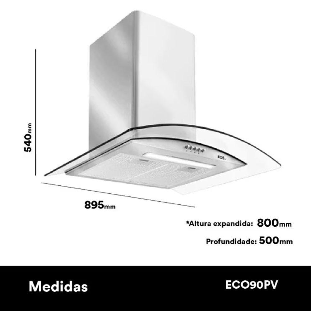 Coifa E Depurador De Parede Inox Com Vidro Curvo 90cm Eco90pv 220v - Eos B163422 220v
