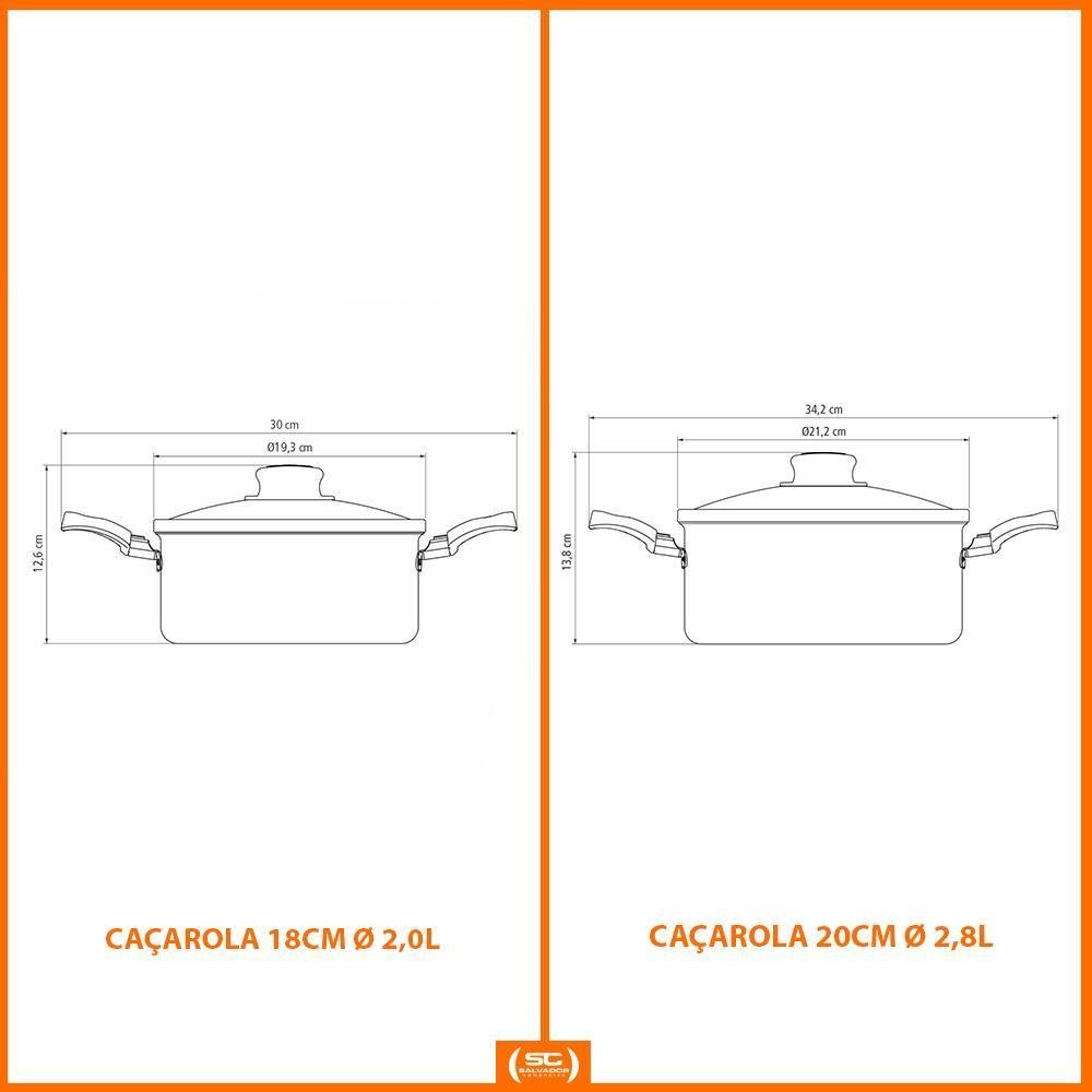 Jogo De Caçarolas Turim Alumínio Chumbo Antiaderente E Utensílios Ability - TramontinaMUITO IMPORTANTE:CONFERIR PRODUTOS NO ATO DO RECEBIMENTO. NÃO ACEITAR PRODUTOS COM EMBALAGEM VIOLADA (AMASSADO, RASGADO, ABERTO, QUEBRADO, ETC), A RECUSA DEVE SER FEITA NO ATO Componentes do Kit:1 - Caçarola Turim Alumínio Antiaderente Chumbo 20cm 2,8l Ptc21 - Caçarola Turim Alumínio Antiaderente Chumbo 18cm 2,0l Ptc1 1 - Espumadeira 29cm Ability em Nylon Preto - Tramontina 1 - Espátula 30cm Ability em Nylon Preto - Tramontina1 - Espátula Para Bolo e Torta 30cm Ability em Nylon Preto - Tramontina Jogo de Caçarolas Turim Alumínio Chumbo Antiaderente e Utensílios Ability - Tramontina Eleve suas habilidades culinárias com o Jogo de Caçarolas Turim. É a escolha perfeita para quem busca praticidade no dia a dia e resultados de chef. Este conjunto de panelas é ideal para residências, apartamentos ou até mesmo para presentear quem ama cozinhar. Com ele, você transforma a preparação de qualquer receita em um momento prazeroso e sem estresse. As peças possuem revestimento antiaderente Starflon T1, que garante que os alimentos não grudem, facilitando a limpeza e o cozimento uniforme. Esse revestimento também permite cozinhar com menos óleo ou gordura, contribuindo para uma alimentação mais saudável. Especificações Técnicas Caçarola 20cm:- Capacidade: 2,8L;- Alumínio com 1,2mm de espessura;- Revestimento anti-aderente;- Altura com tampa: 13,5cm;- Altura sem tampa: 9cm;- Altura interna: 8,7cm;- Diâmetro: 20cm;- Comprimento total: 32,5cm;- Garantia de 90 dias para vícios ou defeitos de fabricação;- Não utilizar em temperaturas superiores à 260°C. Especificações Técnicas Caçarola 18cm:- Capacidade: 2,0L;- Alumínio com 1,2mm de espessura;- Revestimento anti-aderente;- Altura com tampa : 12,5cm;- Altura sem tampa: 8cm;- Altura interna: 7,8cm;- Diâmetro: 18cm;- Comprimento total: 30,5cm;- Garantia de 90 dias para vícios ou defeitos de fabricação;- Não utilizar em temperaturas superiores à 260°C. Especificações Espumadeira:- Espumadeira de Nylon que permite uso em temperaturas de até 180 °C.- Cabo comfuro passante possibilitando que sejam pendurado na sua cozinha.- Utensílio ideal para uso em panelas com revestimentos antiaderentes e cerâmicos, pois não danifica o produto.- Pode ir à máquina de lavar louças facilitando seu dia a dia. Especificações Espátula:- Espátula de Nylon que permite uso em temperaturas de até 180 °C.- Cabo com furo passante possibilitando que sejam pendurado na sua cozinha.- Utensílio ideal para uso em panelas com revestimentos antiaderentes e cerâmicos, pois não danifica o produto.- Pode ir à máquina de lavar louças facilitando seu dia a dia. Especificações Espátula Para Bolos:- Espátula de Nylon que permite uso em temperaturas de até 180 °C.- Cabo com furo passante possibilitando que sejam pendurado na sua cozinha.- Utensílio ideal para uso em panelas com revestimentos antiaderentes e cerâmicos, pois não danifica o produto.- Pode ir à máquina de lavar louças facilitando seu dia a dia Cor: Cinza | É kit de fábrica: Não | Quantidade de Peças: 5 | Materiais: Alumínio | Adequado para fogão de indução: Não | Com revestimento antiaderente: Sim
