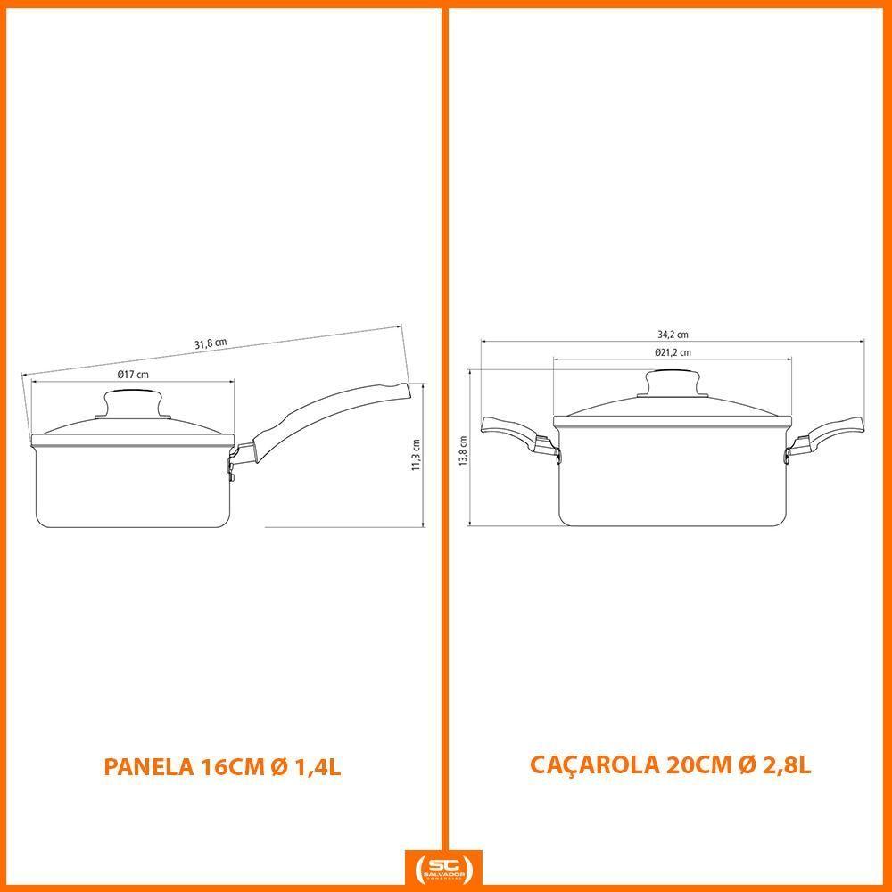Jogo De Panelas Turim Alumínio Chumbo Antiaderente E Utensílios Ability - TramontinaMUITO IMPORTANTE:CONFERIR PRODUTOS NO ATO DO RECEBIMENTO. NÃO ACEITAR PRODUTOS COM EMBALAGEM VIOLADA (AMASSADO, RASGADO, ABERTO, QUEBRADO, ETC), A RECUSA DEVE SER FEITA NO ATO Componentes do Kit:1 - Caçarola Turim Alumínio Antiaderente Chumbo 20cm 2,8l Ptc21 - Panela Turim Alumínio Antiaderente Chumbo 16cm 1,4L PTC3 - Tramontina 1 - Espumadeira 29cm Ability em Nylon Preto - Tramontina 1 - Espátula 30cm Ability em Nylon Preto - Tramontina1 - Espátula Para Bolo e Torta 30cm Ability em Nylon Preto - Tramontina Jogo de Panelas Turim Alumínio Chumbo Antiaderente e Utensílios Ability - Tramontina Eleve suas habilidades culinárias com o Jogo de Panelas Turim. É a escolha perfeita para quem busca praticidade no dia a dia e resultados de chef. Este conjunto de panelas é ideal para residências, apartamentos ou até mesmo para presentear quem ama cozinhar. Com ele, você transforma a preparação de qualquer receita em um momento prazeroso e sem estresse. As peças possuem revestimento antiaderente Starflon T1, que garante que os alimentos não grudem, facilitando a limpeza e o cozimento uniforme. Esse revestimento também permite cozinhar com menos óleo ou gordura, contribuindo para uma alimentação mais saudável. Especificações Técnicas Caçarola 20cm:- Capacidade: 2,8L;- Alumínio com 1,2mm de espessura;- Revestimento anti-aderente;- Altura com tampa: 13,5cm;- Altura sem tampa: 9cm;- Altura interna: 8,7cm;- Diâmetro: 20cm;- Comprimento total: 32,5cm;- Garantia de 90 dias para vícios ou defeitos de fabricação;- Não utilizar em temperaturas superiores à 260°C. Especificações Técnicas Caçarola 16cm:- Capacidade: 1,4L;- Alumínio com 1,2mm de espessura;- Revestimento anti-aderente;- Altura com tampa e cabo: 13,9cm;- Altura somente com tampa: 14,4cm;- Altura interna: 6,7cm;- Diâmetro: 16cm;- Comprimento total: 31,9cm;- Garantia de 90 dias para vícios ou defeitos de fabricação;- Não utilizar em temperaturas superiores à 260°C. Especificações Espumadeira:- Espumadeira de Nylon que permite uso em temperaturas de até 180 °C.- Cabo comfuro passante possibilitando que sejam pendurado na sua cozinha.- Utensílio ideal para uso em panelas com revestimentos antiaderentes e cerâmicos, pois não danifica o produto.- Pode ir à máquina de lavar louças facilitando seu dia a dia. Especificações Espátula:- Espátula de Nylon que permite uso em temperaturas de até 180 °C.- Cabo com furo passante possibilitando que sejam pendurado na sua cozinha.- Utensílio ideal para uso em panelas com revestimentos antiaderentes e cerâmicos, pois não danifica o produto.- Pode ir à máquina de lavar louças facilitando seu dia a dia. Especificações Espátula Para Bolos:- Espátula de Nylon que permite uso em temperaturas de até 180 °C.- Cabo com furo passante possibilitando que sejam pendurado na sua cozinha.- Utensílio ideal para uso em panelas com revestimentos antiaderentes e cerâmicos, pois não danifica o produto.- Pode ir à máquina de lavar louças facilitando seu dia a dia Cor: Cinza | É kit de fábrica: Não | Quantidade de Peças: 5 | Materiais: Alumínio | Adequado para fogão de indução: Não | Com revestimento antiaderente: Sim
