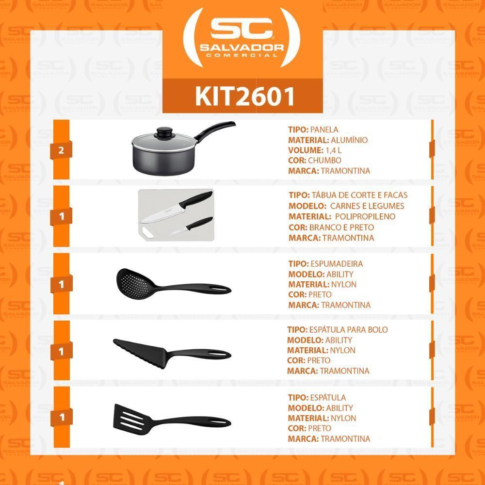 2 Panelas Turim Alumínio Antiaderente 1,4l + Conjunto De Utensílios + Tábua E Facas TramontinaMUITO IMPORTANTE:CONFERIR PRODUTOS NO ATO DO RECEBIMENTO. NÃO ACEITAR PRODUTOS COM EMBALAGEM VIOLADA (AMASSADO, RASGADO, ABERTO, QUEBRADO, ETC), A RECUSA DEVE SER FEITA NO ATO Componentes do Kit:2 - Panela Turim Alumínio Antiaderente Chumbo 16cm 1,4L PTC3 - Tramontina1 - Espumadeira 29cm Ability em Nylon Preto - Tramontina1 - Espátula 30cm Ability em Nylon Preto - Tramontina 251551001 - Espátula Para Bolo e Torta 30cm Ability em Nylon Preto - Tramontina1 - Kit Para Carnes e Legumes Plenus Lâminas Inox Cabos Preto e Tábua 3 Peças - Tramontina 2 Panelas Turim Alumínio Antiaderente 1,4l + Conjunto de Utensílios + Tábua e Facas Tramontina Eleve a sua experiência culinária com este kit completo da Tramontina, a solução ideal para quem busca eficiência e funcionalidade na cozinha. Perfeito para uso doméstico, o conjunto de duas Panelas Turim de 1,4 litros otimiza o preparo de refeições diárias, enquanto o conjunto de utensílios, a tábua e as facas proporcionam tudo que você precisa para cozinhar. O revestimento antiaderente Starflon T1 das panelas impede que os alimentos grudem, facilitando o cozimento e a limpeza. As panelas, com sua espessura de 1,2 mm, garantem um aquecimento uniforme e rápido. O kit inclui um conjunto de utensílios que atende a todas as necessidades, além de uma tábua de madeira e facas para preparo de alimentos. Construído com materiais de alta qualidade, como alumínio, nylon e madeira, este conjunto oferece durabilidade e resistência para uso contínuo. Não perca a oportunidade de ter uma cozinha totalmente equipada e funcional. Adquira já o seu kit e transforme suas refeições com total facilidade! Especificações Panela:- Capacidade: 1,4L;- Alumínio com 1,2mm de espessura;- Revestimento anti-aderente;- Altura com tampa e cabo: 13,9cm;- Altura somente com tampa: 14,4cm;- Diâmetro: 16cm;- Comprimento total: 31,9cm;- Não utilizar em temperaturas superiores à 260°C. Especificações Espumadeira:- Espumadeira de Nylon que permite uso em temperaturas de até 180 °C.- Cabo comfuro passante possibilitando que sejam pendurado na sua cozinha.- Utensílio ideal para uso em panelas com revestimentos antiaderentes e cerâmicos, pois não danifica o produto.- Pode ir à máquina de lavar louças facilitando seu dia a dia. Especificações Espátula 30cm:- Espátula de Nylon que permite uso em temperaturas de até 180 °C.- Cabo com furo passante possibilitando que sejam pendurado na sua cozinha.- Utensílio ideal para uso em panelas com revestimentos antiaderentes e cerâmicos, pois não danifica o produto.- Pode ir à máquina de lavar louças facilitando seu dia a dia. Especificações Espátula para Bolo:- Espátula de Nylon que permite uso em temperaturas de até 180 °C.- Cabo com furo passante possibilitando que sejam pendurado na sua cozinha.- Utensílio ideal para uso em panelas com revestimentos antiaderentes e cerâmicos, pois não danifica o produto.- Pode ir à máquina de lavar louças facilitando seu dia a dia Especificações Kit Lâminas:- Marca: Tramontina;- Linha: Plenus;- Composição do Kit: 1 faca para carnes com lâmina em aço inox, 1 faca para legumes com lâmina em aço inox, 1 tábua de corte em polipropileno na cor branca;- Material das Lâminas: Aço inoxidável com tratamento térmico, proporcionando maior durabilidade do fio;- Material dos Cabos: Polipropileno na cor preta, oferecendo resistência, durabilidade e conforto no manuseio;- Tábua de Corte: Fabricada em polipropileno branco com proteção antimicrobiana, contribuindo para a higiene durante o preparo dos alimentos;- Compatibilidade com Lava-Louças: Todas as peças podem ser lavadas em máquina de lavar louças, facilitando a limpeza no dia a dia;- Antes da primeira utilização, lave bem as peças e seque-as completamente;- Manuseie com cuidado produtos cortantes e perfurantes, mantendo-os fora do alcance de crianças;- Para maior durabilidade, recomenda-se secar bem os utensílios antes de guardá-los, mesmo após lavagem em máquina;- Descarte os produtos e embalagens conforme as orientações de reciclagem vigentes; Cor: Cinza | É kit de fábrica: Não | Quantidade de Peças: 8 | Materiais: Alumínio | Adequado para fogão de indução: Não | Com revestimento antiaderente: Sim