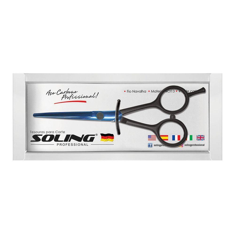 Tesoura Profissional Soling Fio Navalha Premium Azul - Preta 5.5 Polegadas