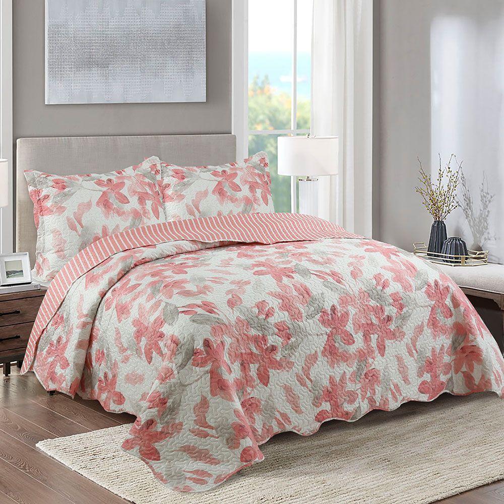 Kit Cobre Leito Colcha Casal Boutik Dupla Face - Cecilia