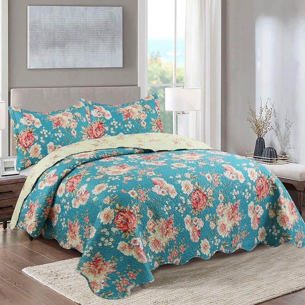 Kit Cobre Leito Colcha Casal Boutik Dupla Face - Vanessa