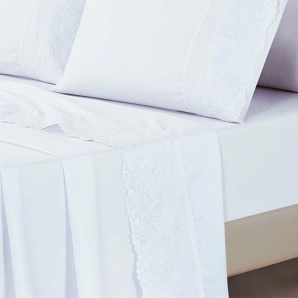 Jogo De Cama Lençol King Desirre 4 Peças - Branco - 100% Poliéster