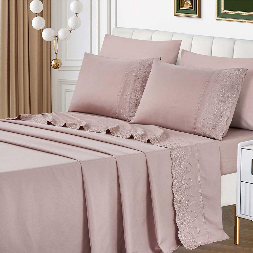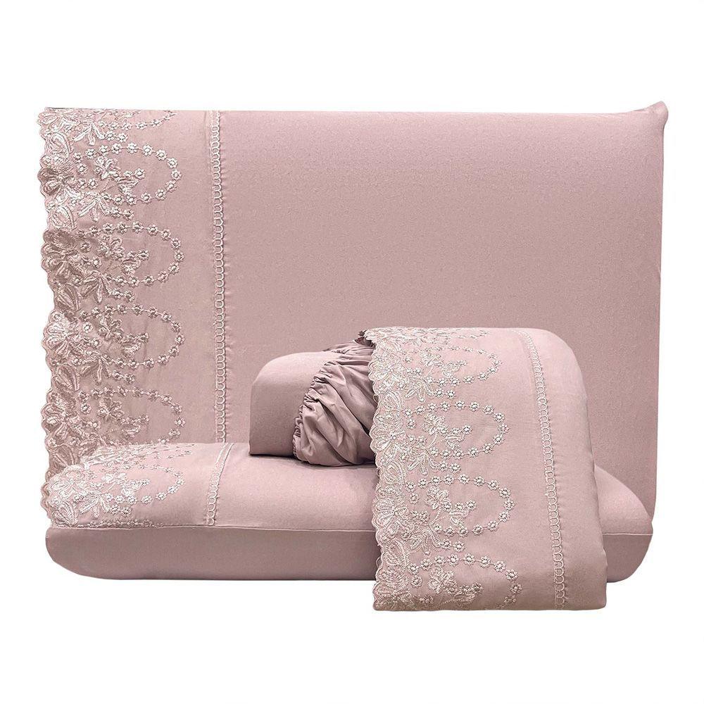 Jogo De Cama Lençol King Desirre 4 Peças - Rosê - 100% Poliéster