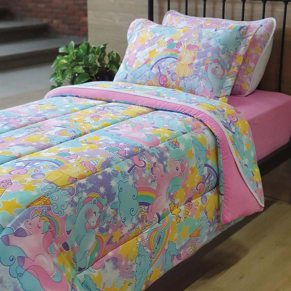 Edredom Mymo Solteiro Dupla Face Malha Unicórnio - 100% Algodão