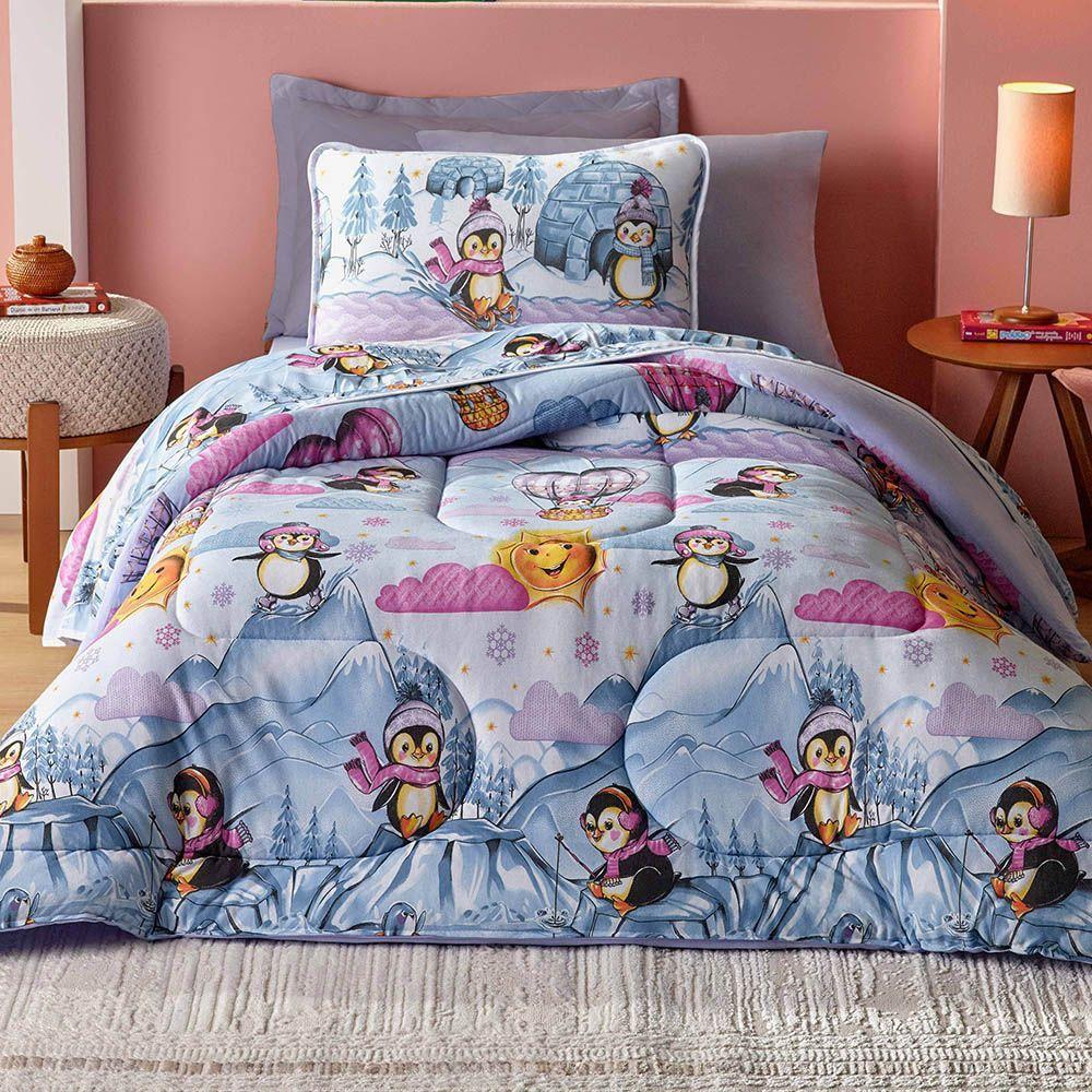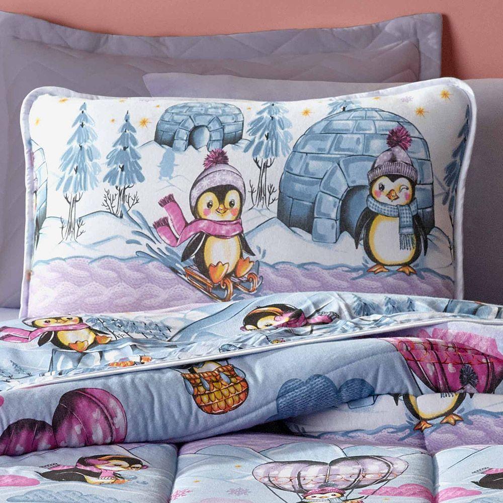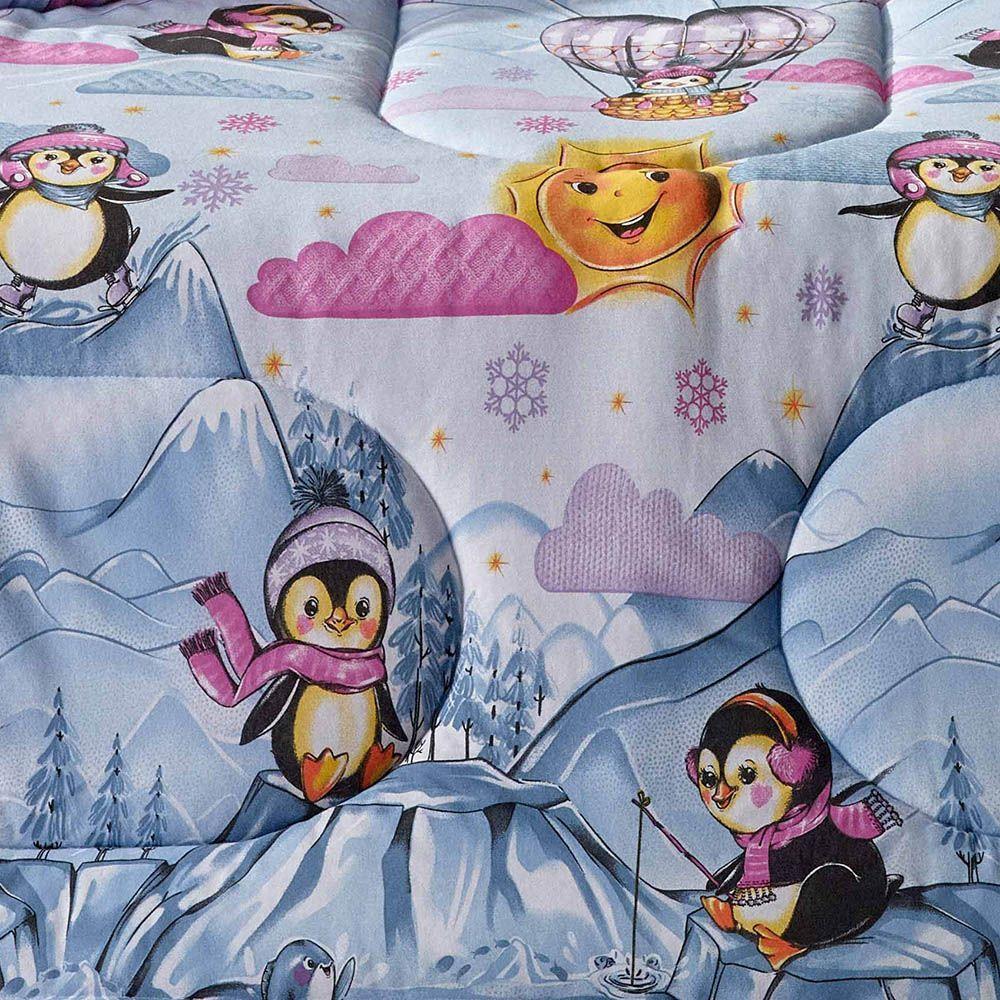 Edredom Mymo Solteiro Dupla Face Malha Pinguim - 100% Algodão