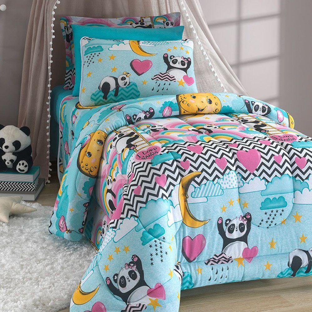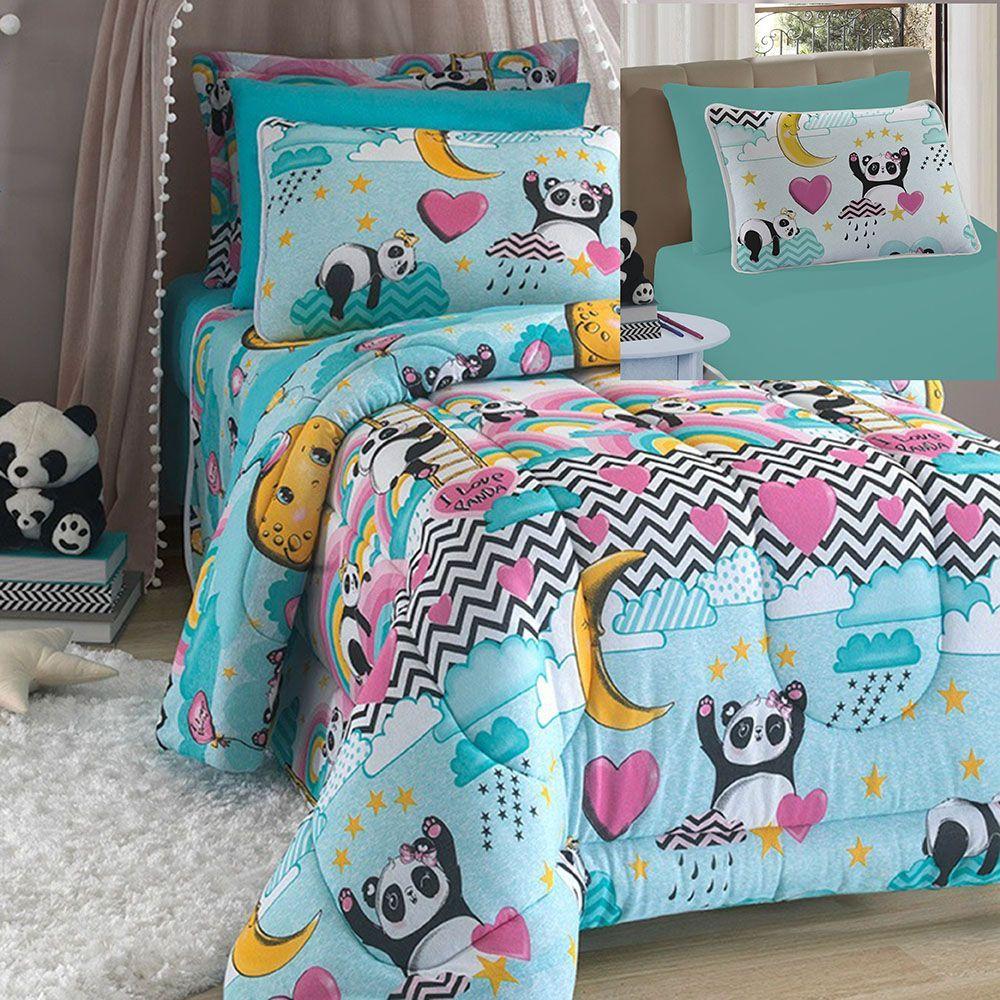 Kit Coordenado Edredom Com Lençol Solteiro Mymo - Panda - 100% Algodão