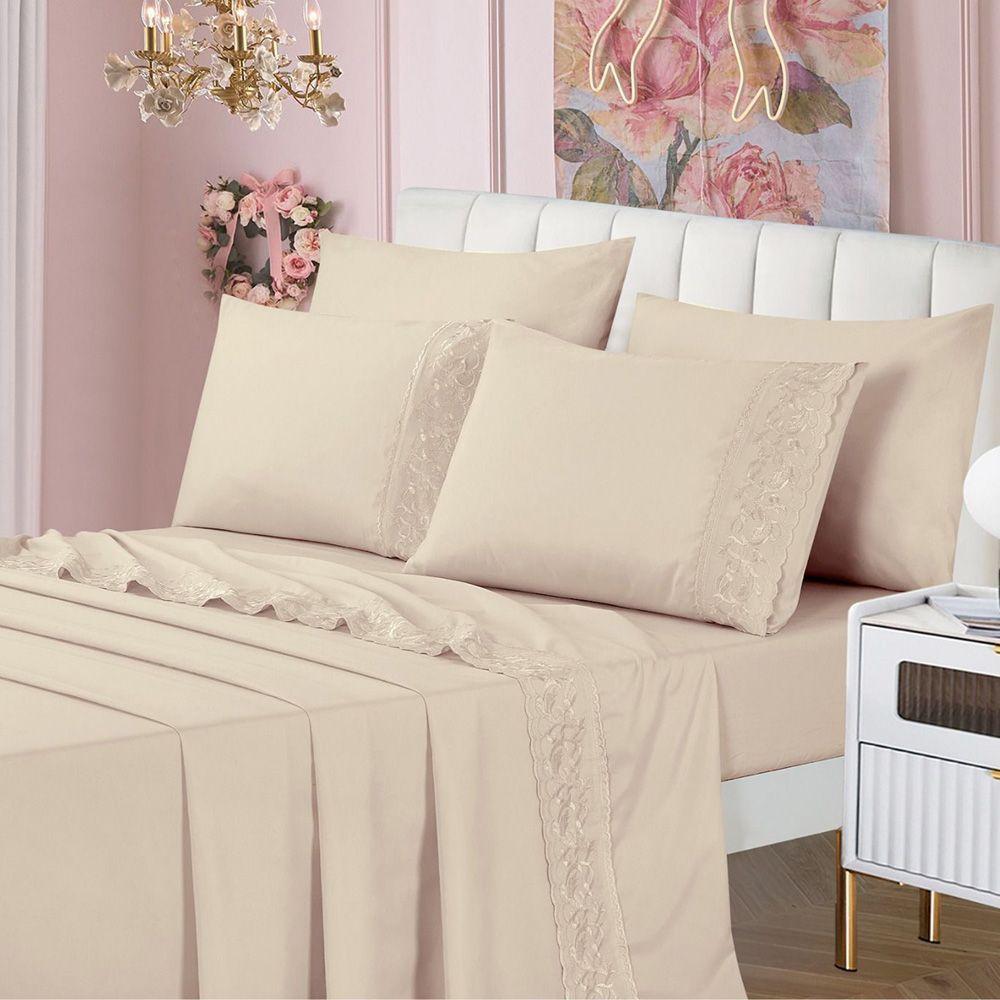 Jogo De Cama Lençol King Top Line 4 Peças - Palha - 100% Poliéster