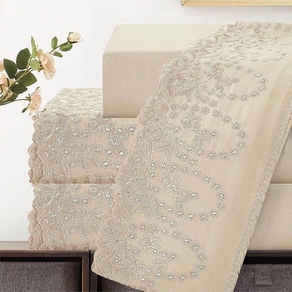 Jogo De Cama Lençol Queen Desirre 4 Peças - Palha - 100% Poliéster