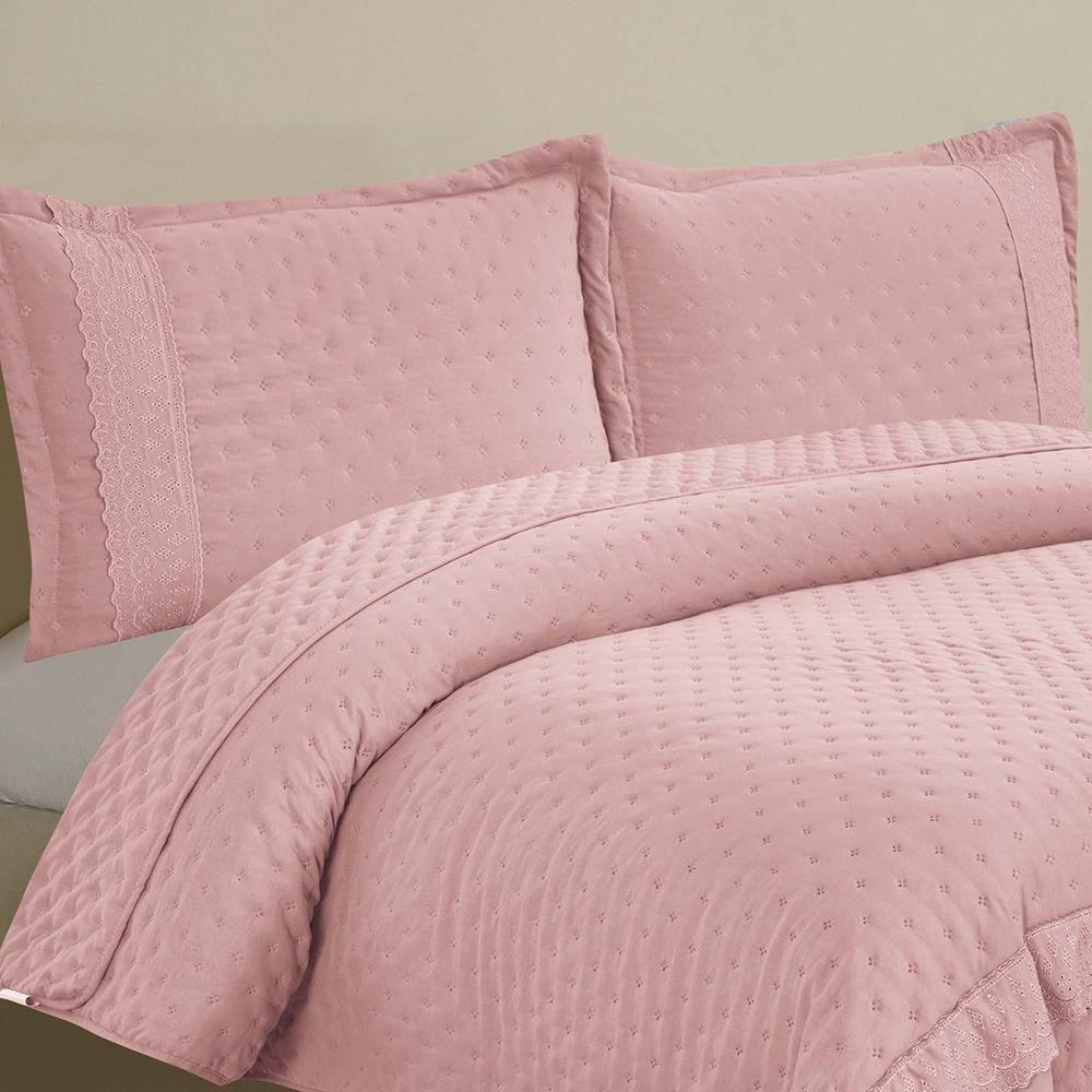 Kit Cobre Leito Colcha Jovial King Dupla Face 3 Peças - Rosê - 100% Poliéster