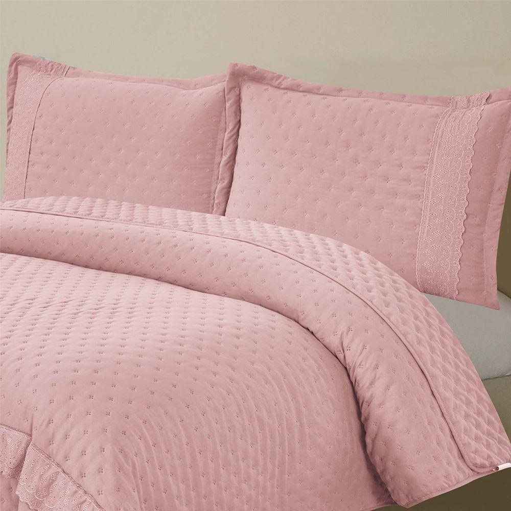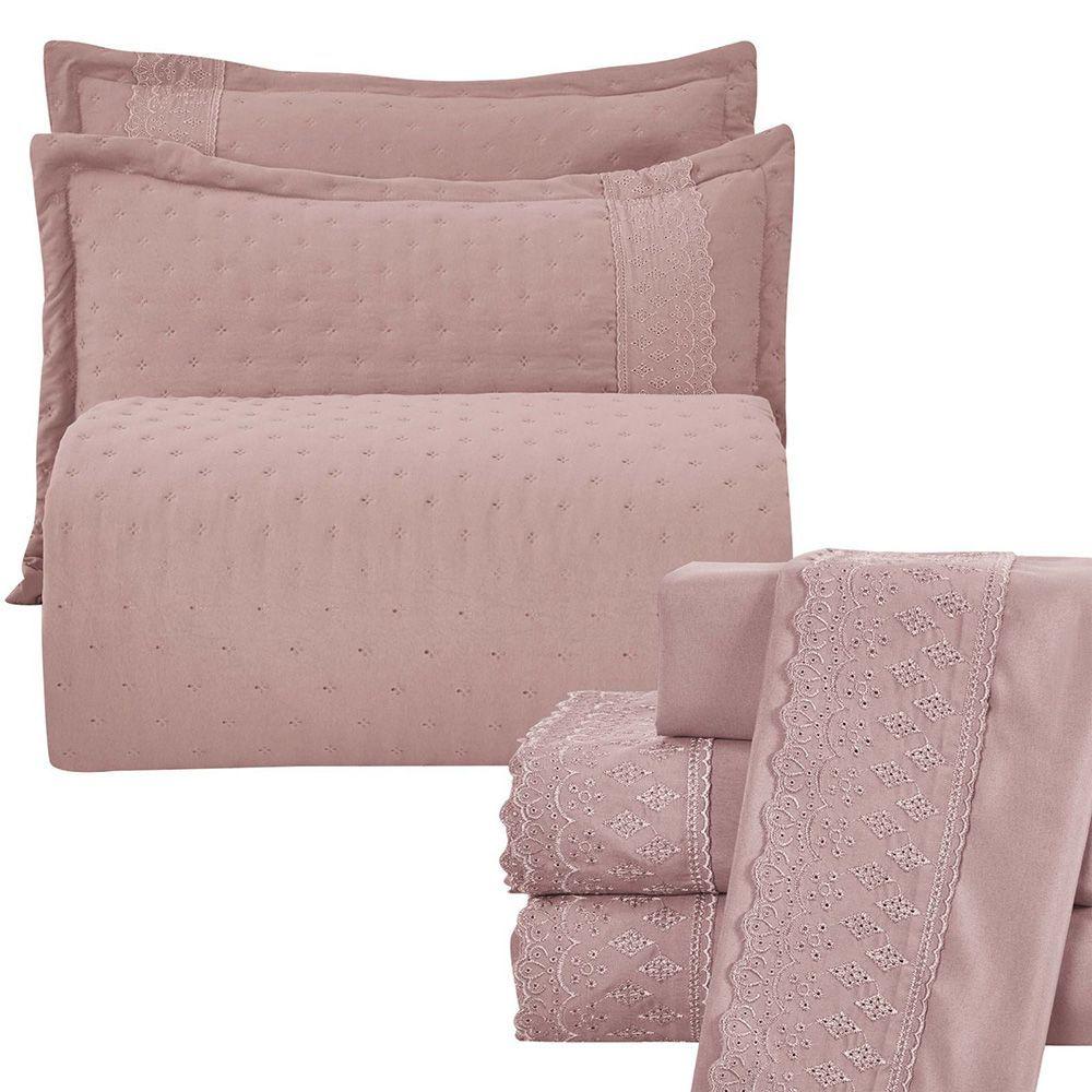 Kit Cobre Leito E Lençol Queen Melody Dupla Face 7 Peças - Rosê - 100% Poliéster