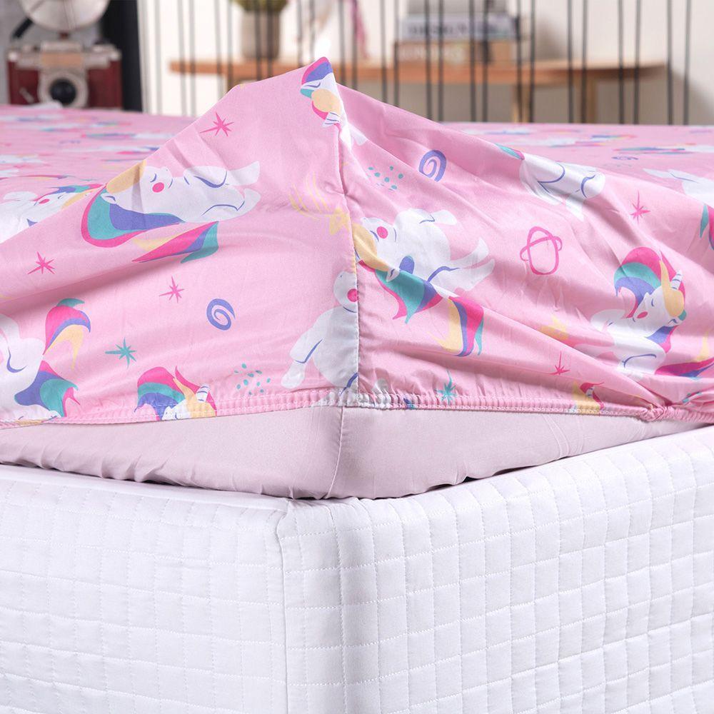 Jogo De Cama Lençol Solteiro Alegria 2 Peças Unicórnio Top - 100% Poliéster
