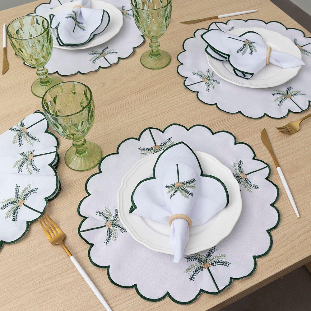Jogo Americano Bordado Em Linha De Seda 12 Peças Tropicos - 100% Poliéster