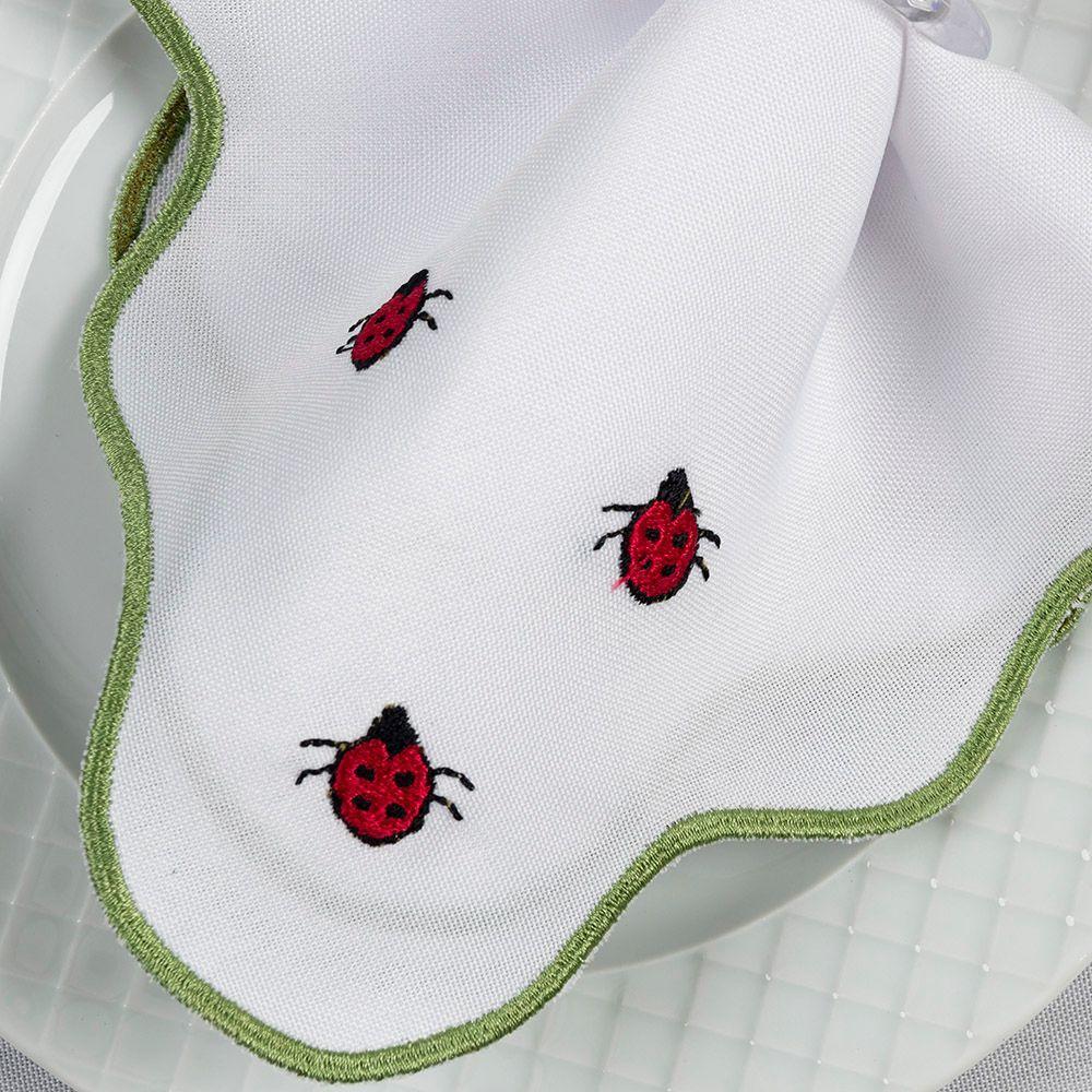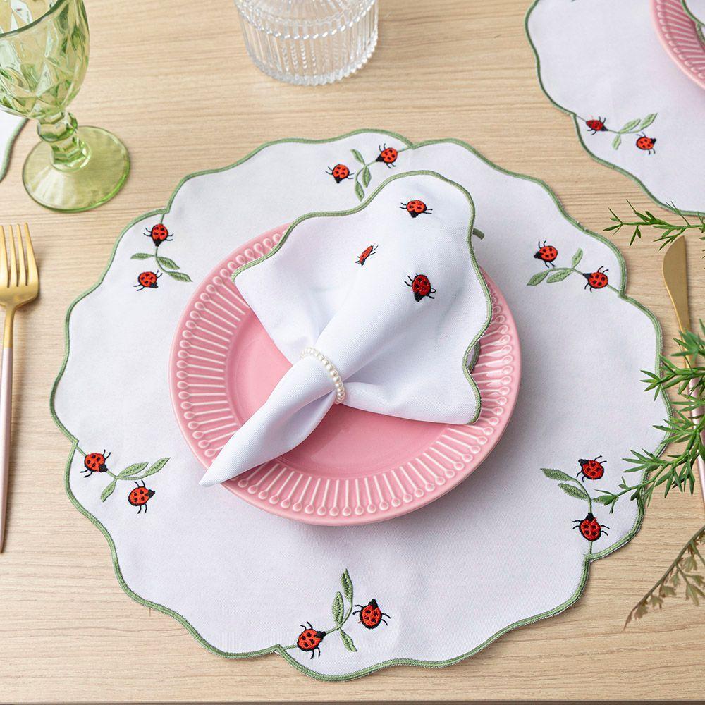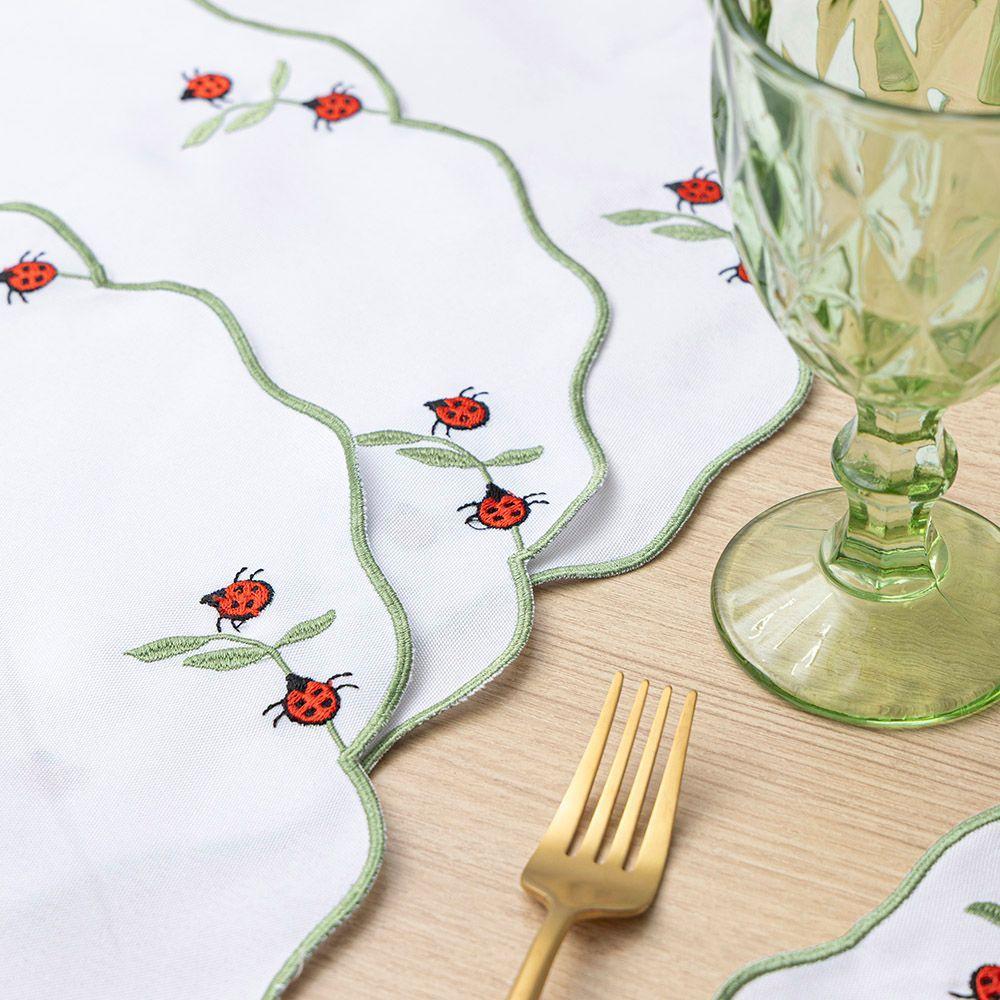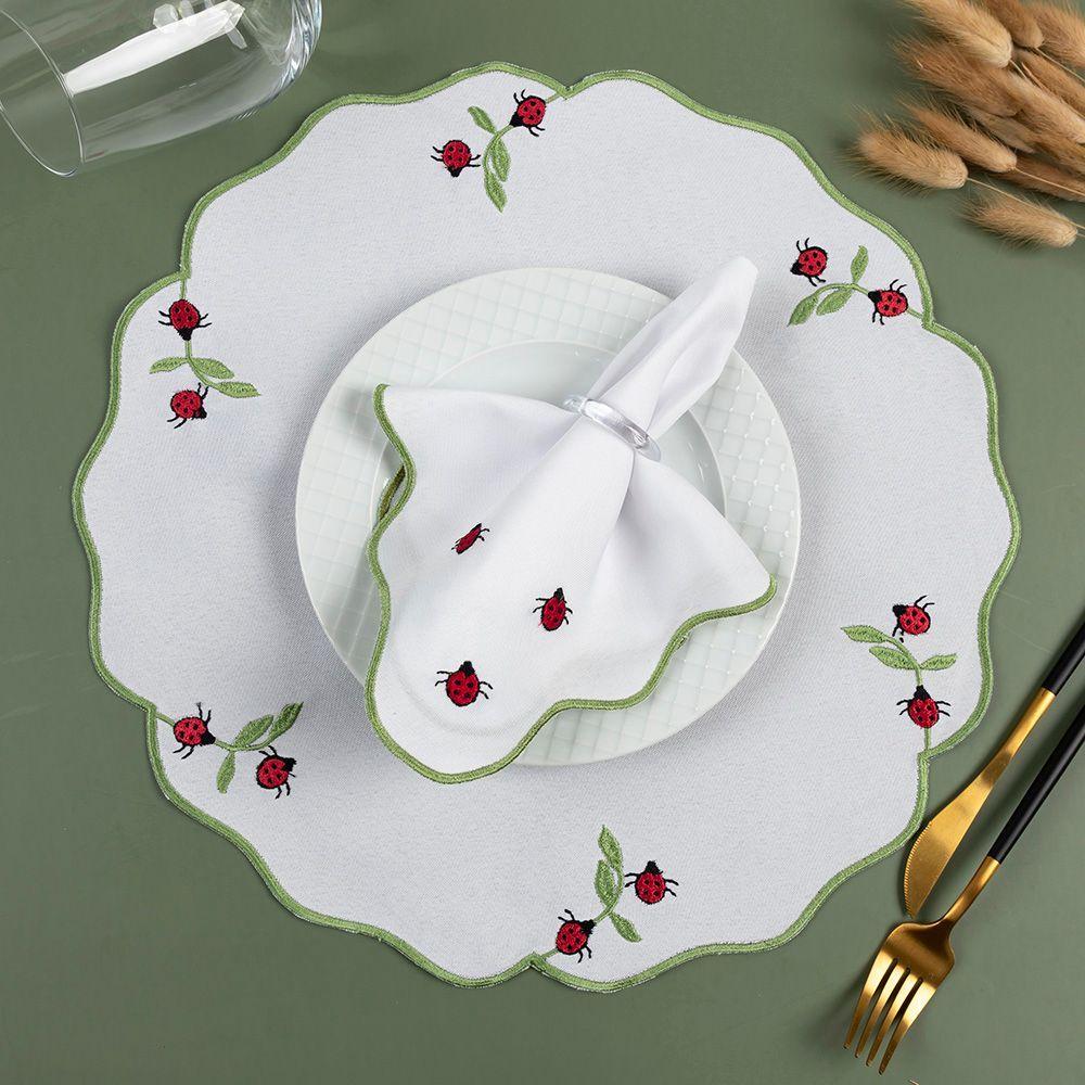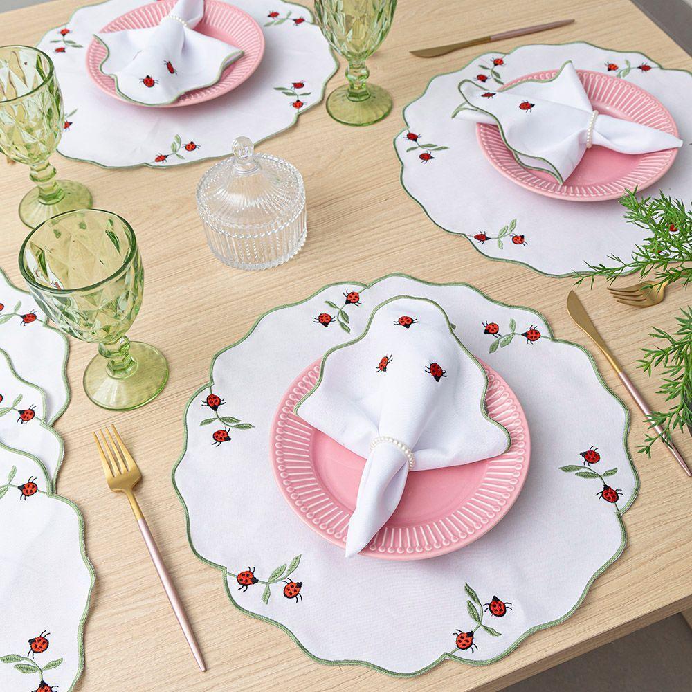Jogo Americano Bordado Em Linha De Seda 12 Peças Joaninha - 100% Poliéster