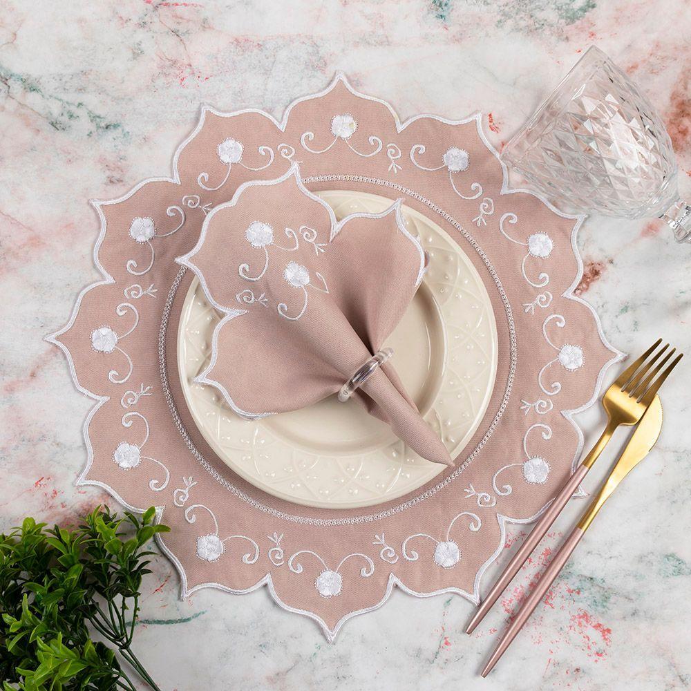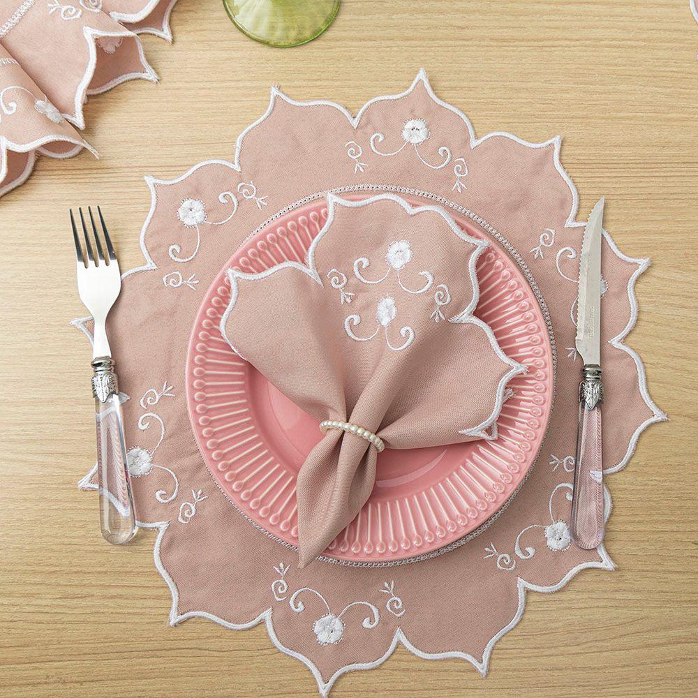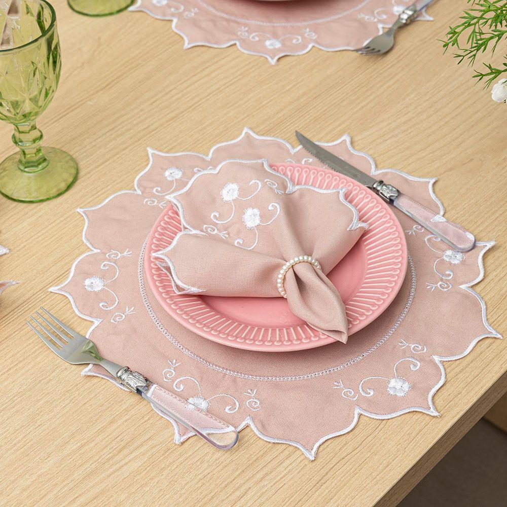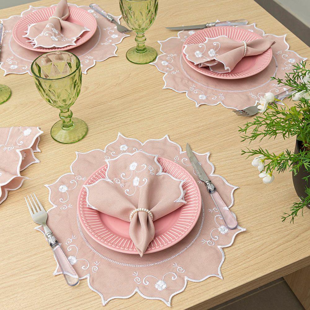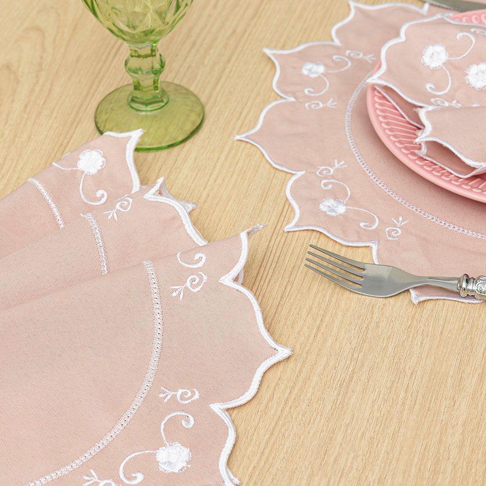 Jogo Americano Bordado Em Linha De Seda 12 Peças Lilia - 100% Poliéster