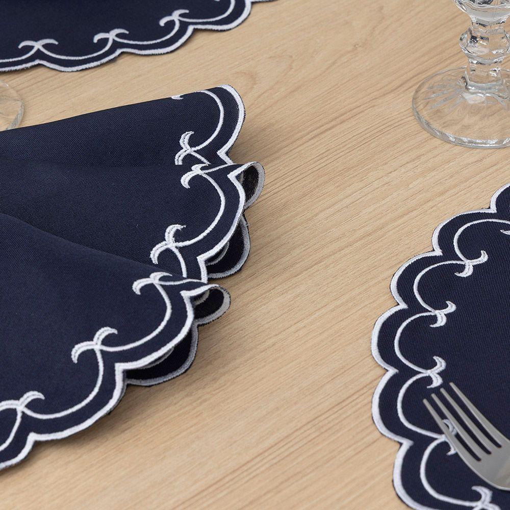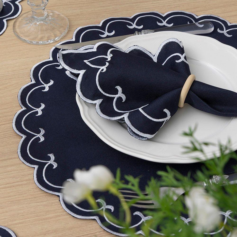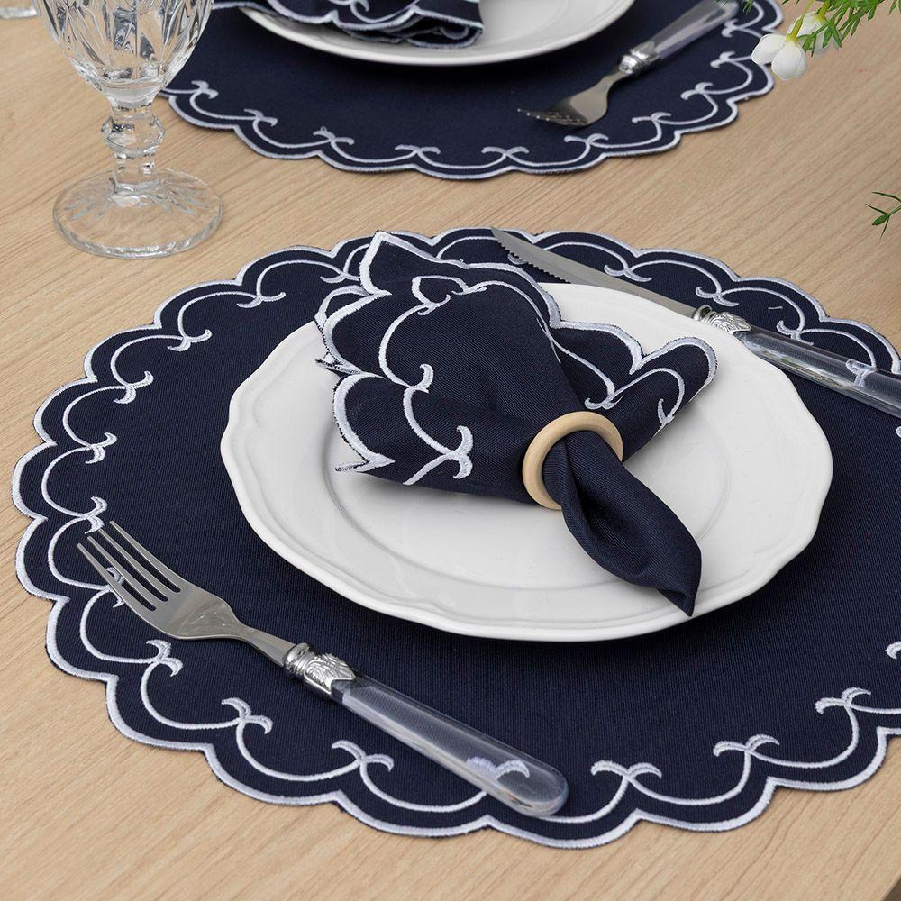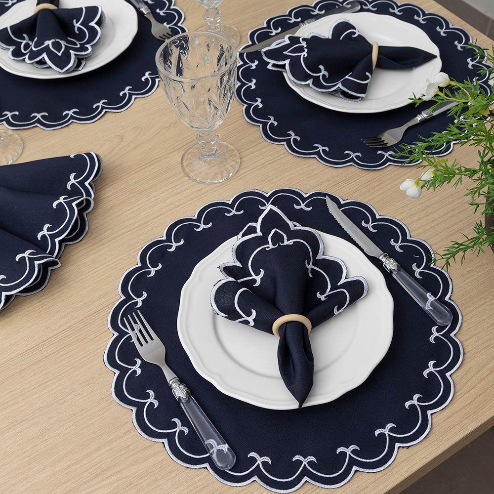 Jogo Americano Bordado 12 Peças Stillus - Marinho - 100% Poliéster