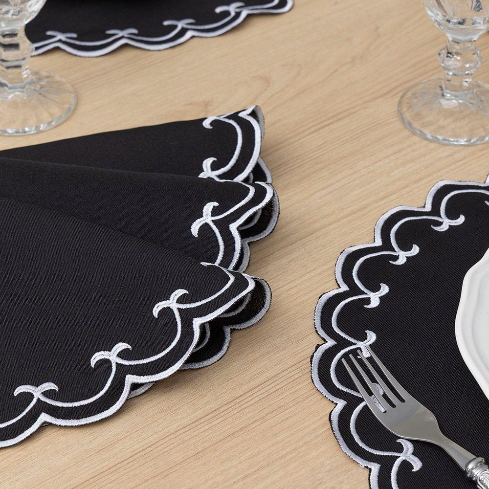 Jogo Americano Bordado 12 Peças Stillus - Preto - 100% Poliéster