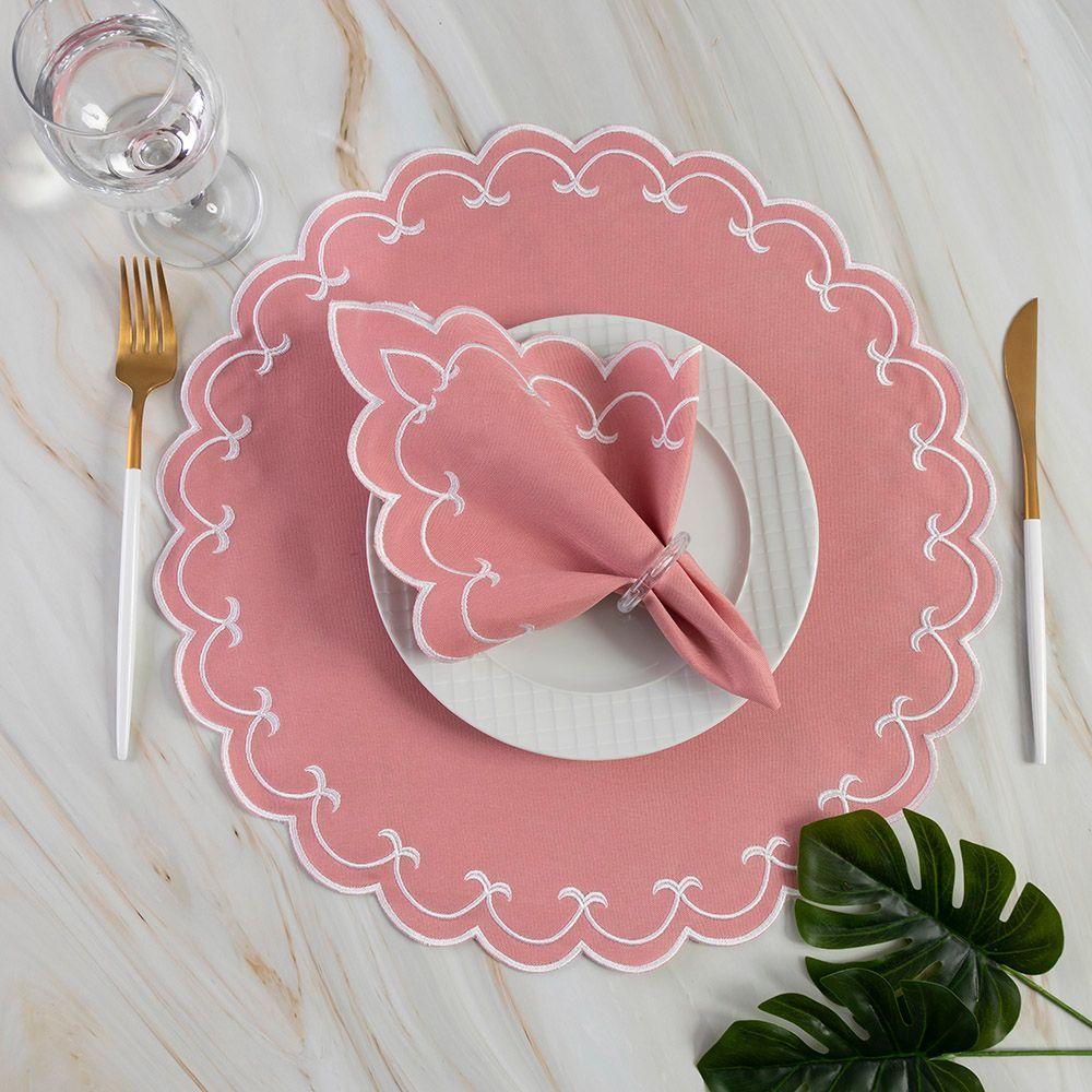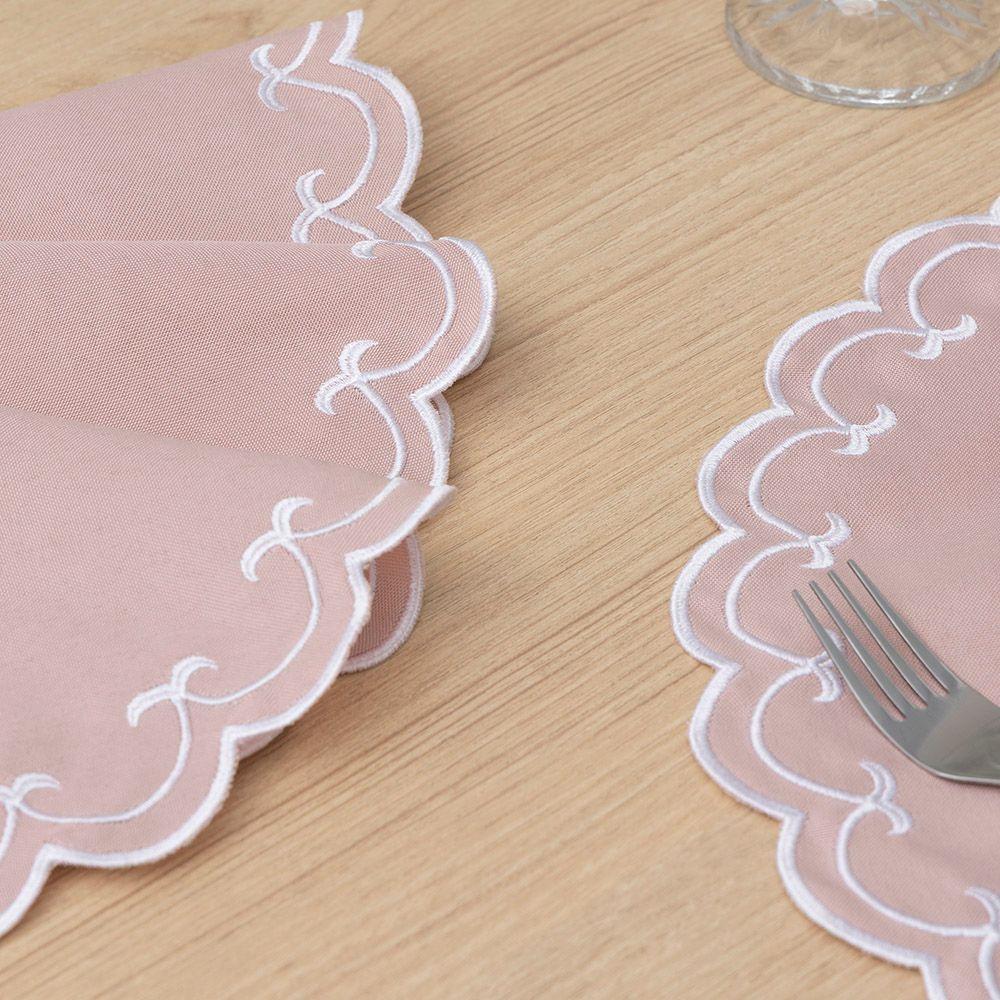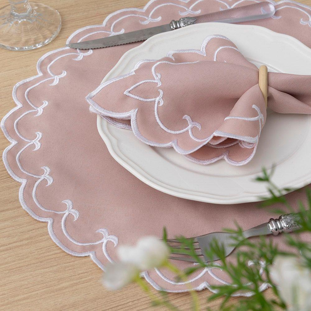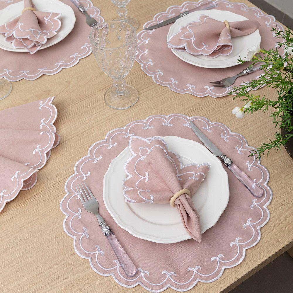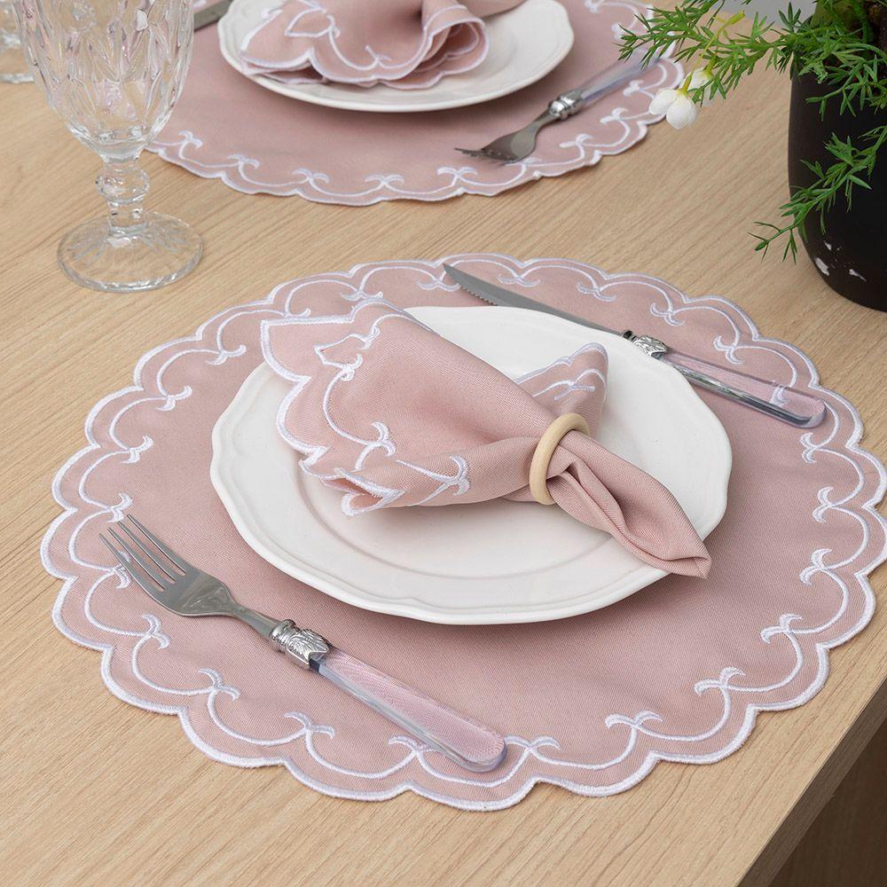 Jogo Americano Bordado 12 Peças Stillus - Rosê - 100% Poliéster