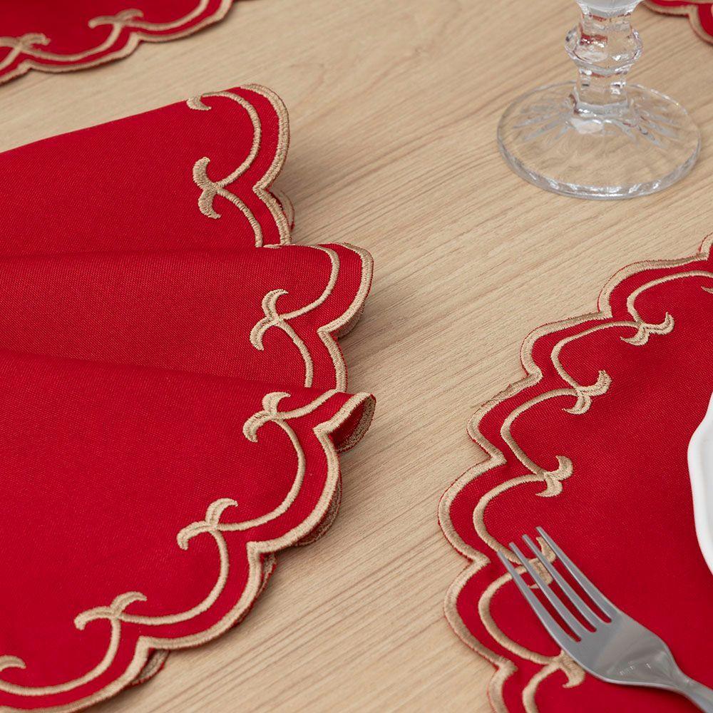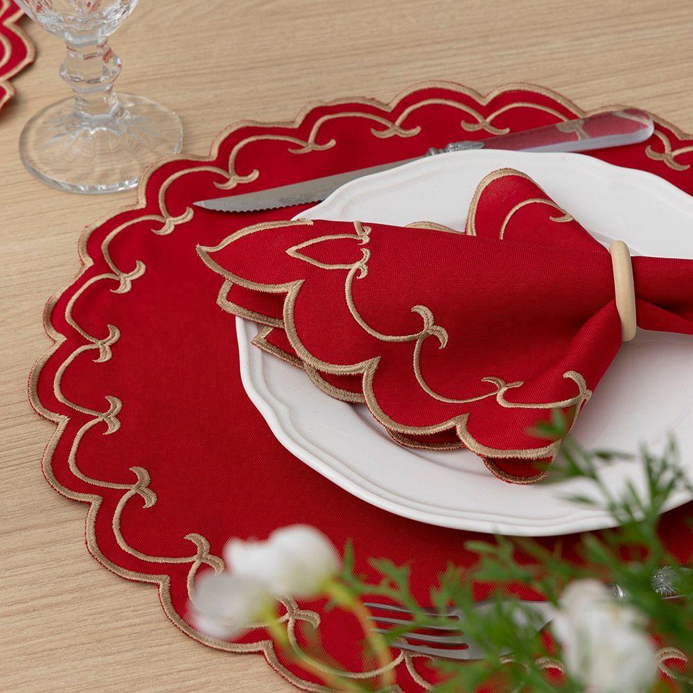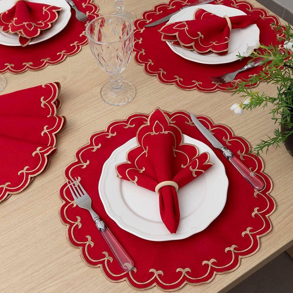 Jogo Americano Bordado 12 Peças Stillus - Vermelho - 100% Poliéster