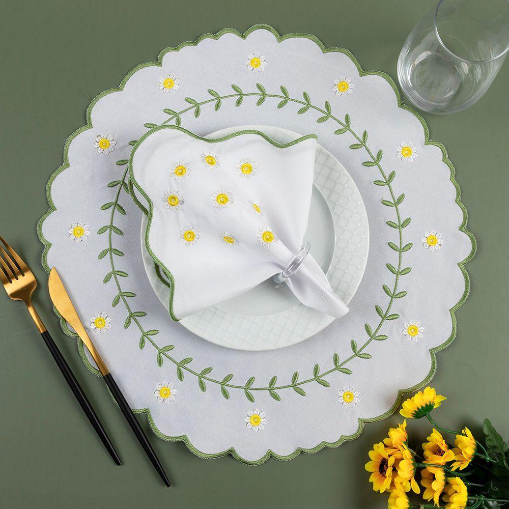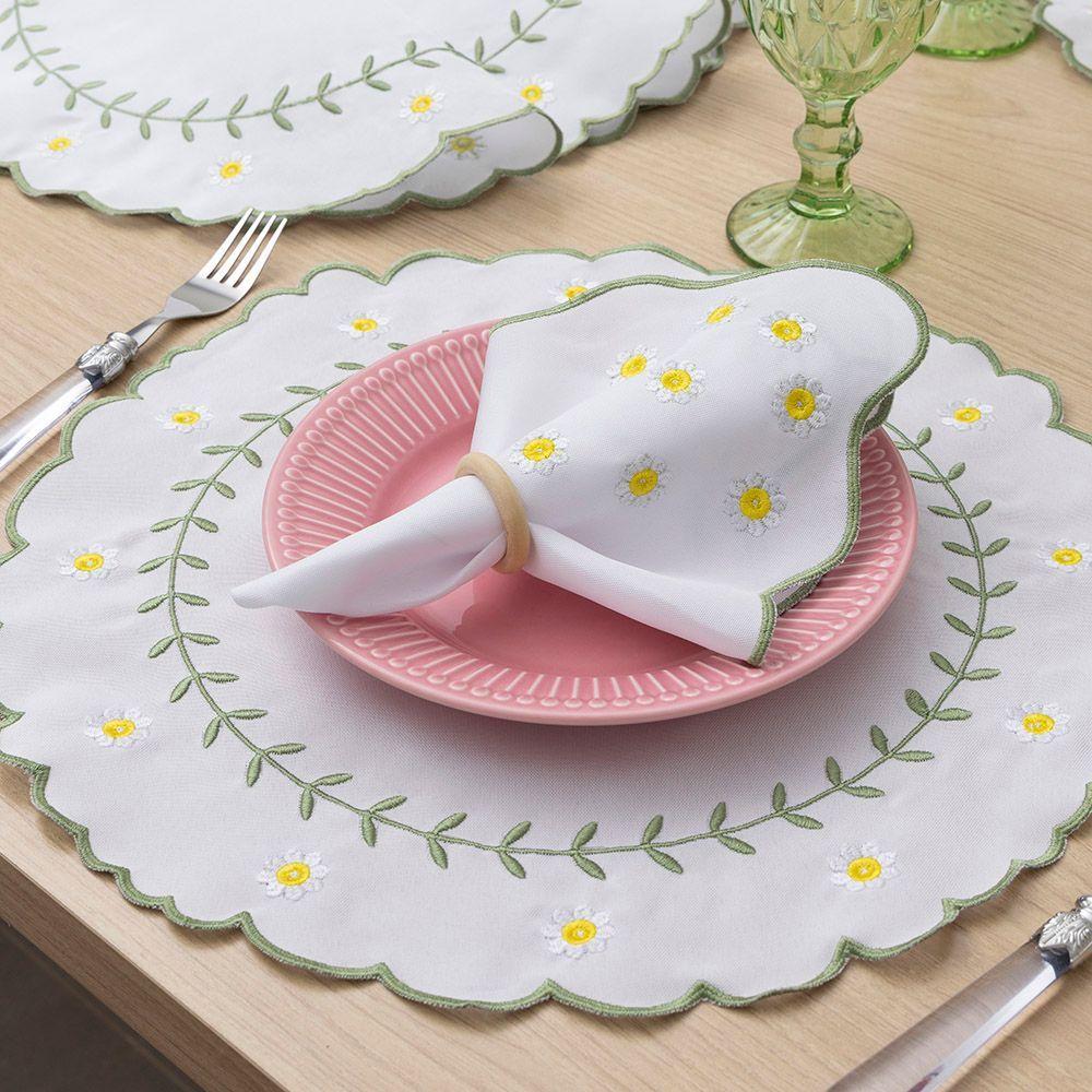 Jogo Americano Bordado 12 Peças Margarida - 100% Poliéster