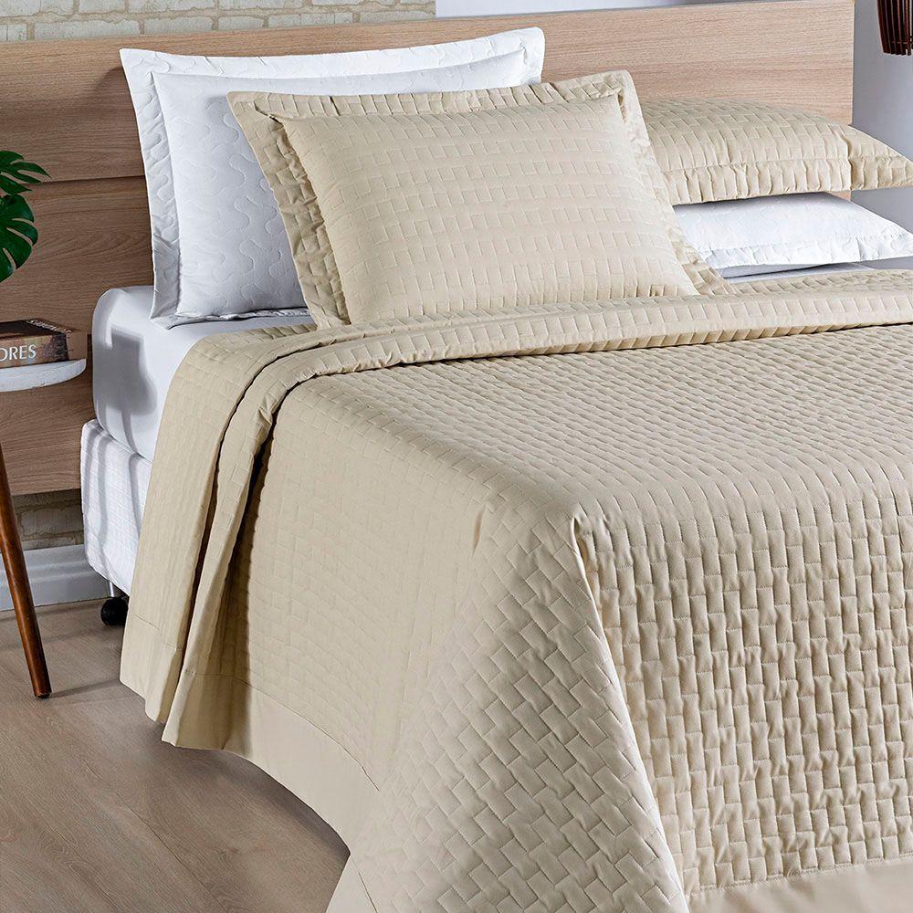 Cobre Leito Colcha King Milano 3 Peças Cáqui - 100% Poliéster