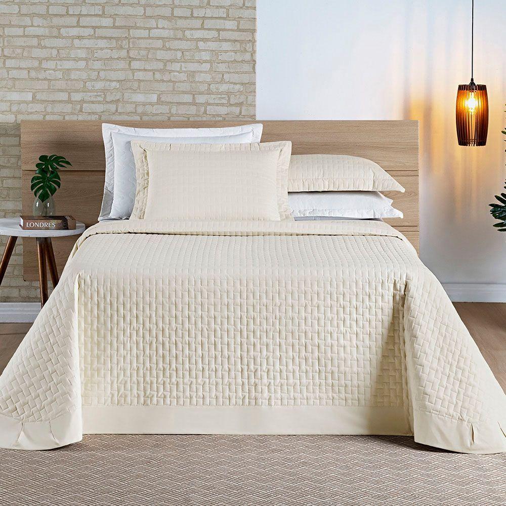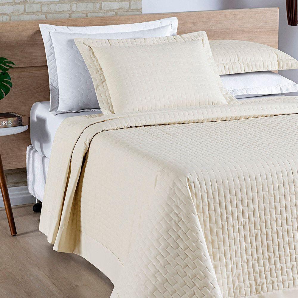 Cobre Leito Colcha King Milano 3 Peças Palha- 100% Poliéster