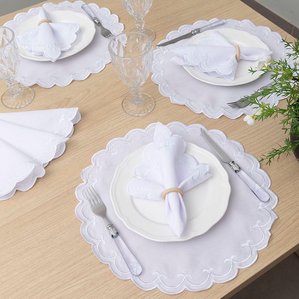 Jogo Americano Bordado 12 Peças Stillus - Branco - 100% Poliéster