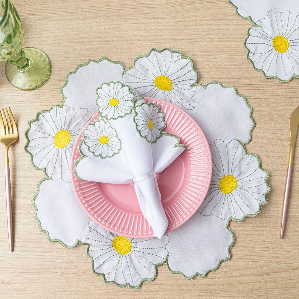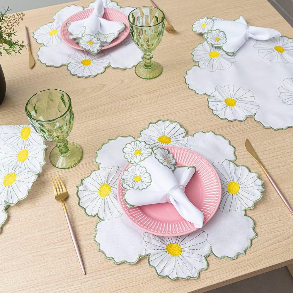 Jogo Americano Bordado Em Linha De Seda 12 Peças Sabrina - 100% Poliéster
