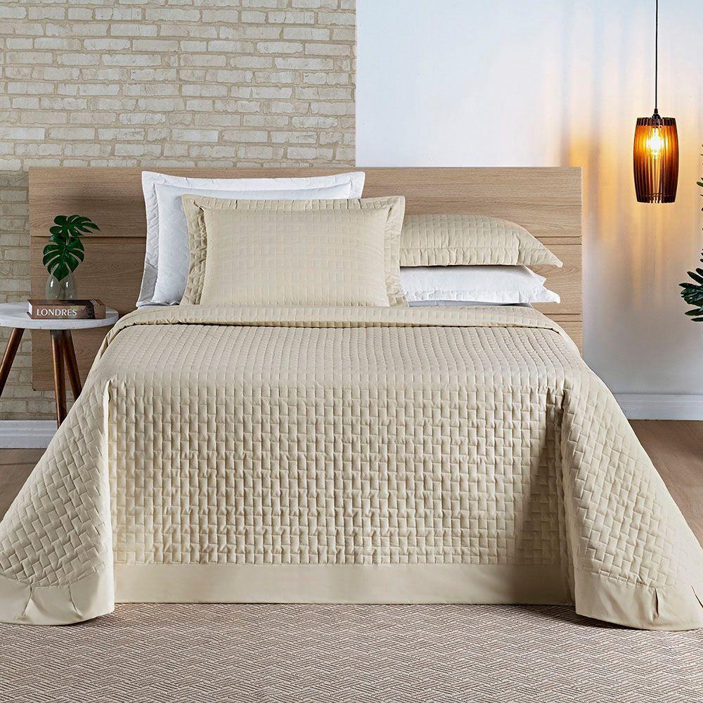 Cobre Leito Colcha Queen Milano 3 Peças Cáqui - 100% Poliéster