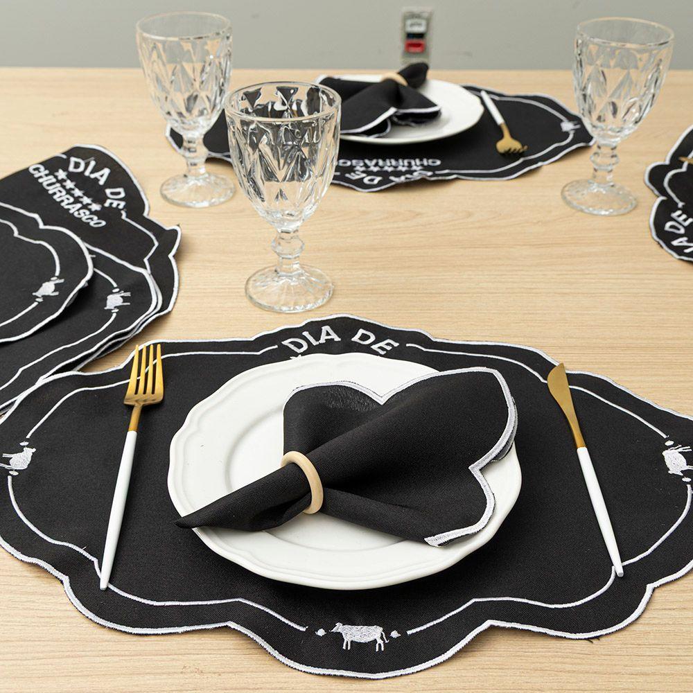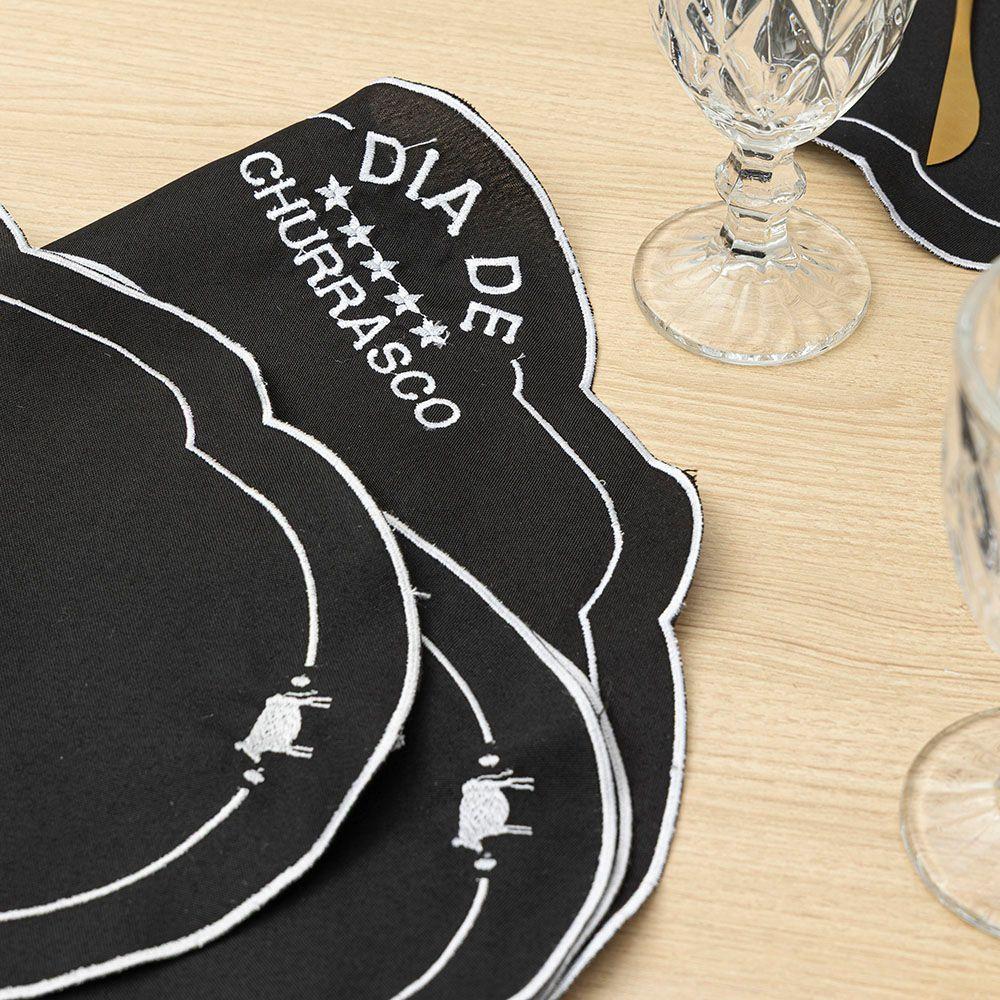 Jogo Americano Bordado Em Linha De Seda 12 Peças Churras - 100% Poliéster