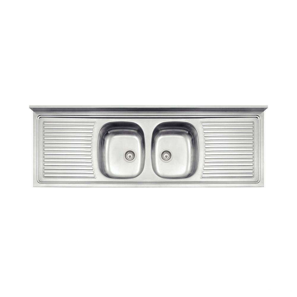 Pia De Apoio Tramontina Ribon 2c 34 Em Aço Inox 160x55 Cm TramontinaPia de apoio Tramontina Ribon 2C 34 em aço inox 160x55 cm Tramontina -Titulo 01Produto não vendável no Brasil, exclusivo para exportação. Pia de Apoio Ribon 2C 34 Fabricada no Brasil. Produto: Pia de apoio com 15,5 cm de profundidade e escorredor para louças. Opcionalmente são oferecidos acessórios como, tábua em madeira, grade aramada, dosador de sabão e cesta quadrada. Material: Fabricada em Aço Inox 304 com acabamento pré-polido e 0,7 mm de espessura, a peça é inteiriça (sem solda) - evitando pontos de corrosão e acúmulos de detritos.Pia com 2 cubas centrais + escorredor.Aço Inox AISI 304.0,7 mm de espessura.Capacidade: 15,5 + 15,5 LAcabamento pré-polido.Acompanha válvula de Ø 4 1/2 .Cuidados com o produtoPara um perfeito funcionamento da pia, montar inicialmente a válvula.Remover a etiqueta colada dentro da pia.Limpar a pia com detergentes normais neutros.-Usar somente esponja macia ou pano para lavar a pia.Esta peça contém bordas cortantes. Manusear com cuidado.Não usar ácido muriático, água sanitária ou qualquer outro solvente para lavar objetos na pia.Na reforma ou construção, proteger a piapara não deixar sobre a peça pó de cimento ou gesso.Enxaguar e secar bem a peça após o uso.Nunca deixar objetos metálicos sobre a peça por períodos muito longos, para evitar a corrosão.Para manter o brilho da sua pia, recomendamos o uso da pasta para polir e remover manchas em superfícies de aço inoxidável Tramontina.Garantia10 anos (90 dias de garantia legal acrescidos de 117 meses de garantia contratual) para vícios ou defeitos de fabricação.Termo de garantia disponível em Certificações/Normas.Características Gerais do Produto:Garantia: - 10 Anos