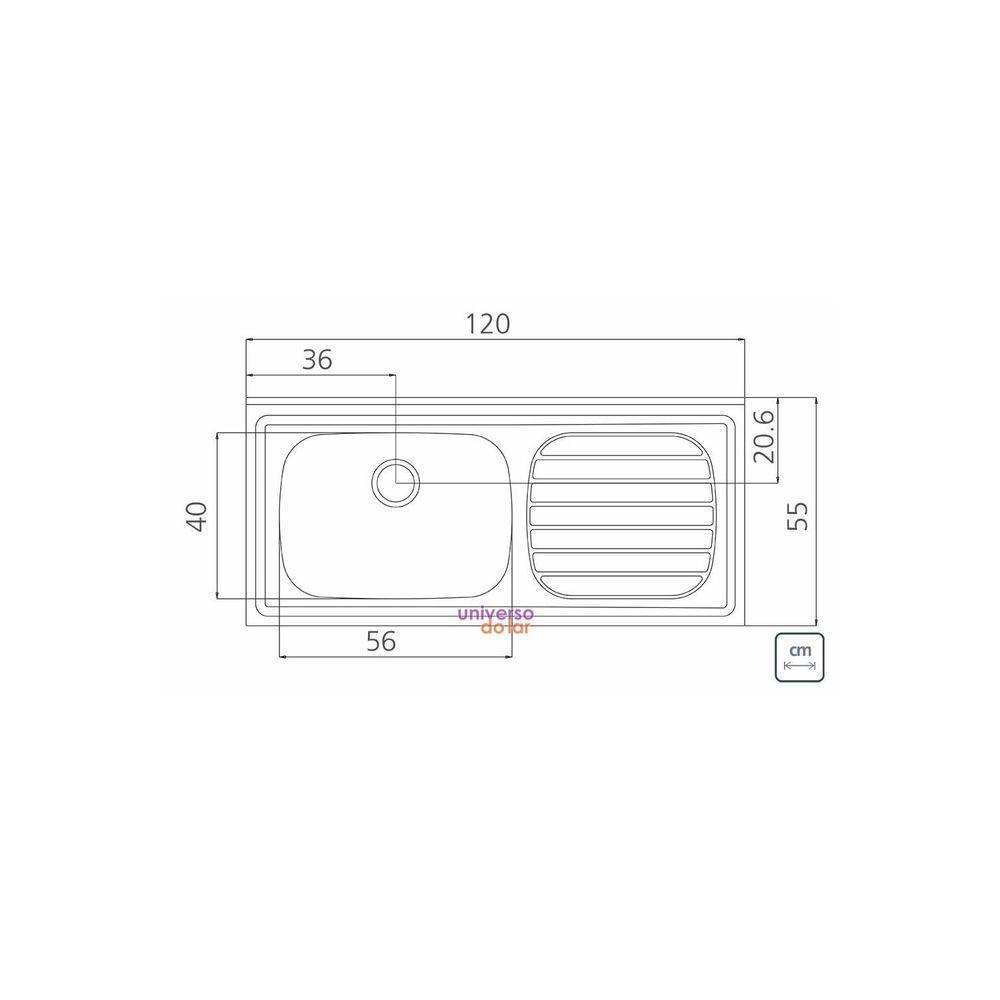 Pia De Apoio Tramontina Filo 56 Ex 120x55 Cm TramontinaPia de Apoio Tramontina Filo 56 EX 120x55 cm Tramontina -Pia de Apoio Tramontina Filo 56 EX em Aço Inox 120x55 cmA Pia de Apoio Tramontina Standard Filo 56 EX em Aço Inox 120x55 cm é a solução completa para a sua residência ou empresa. Com 120x55 cm de tamanho e 13 cm de profundidade, as peças se adaptam a todos os tipos de bancadas e se destacam pelo alto grau de acabamento, beleza e qualidade. Opcionalmente são oferecidos acessórios como, tábua em madeira, grade aramada, dosador de sabão e cesta quadrada. A pia é posicionada no lado esquerdo e fabricada em Aço Inox 430 com acabamento pré-polido e 0,6 mm de espessura. A peça é inteiriça (sem solda) - evitando pontos de corrosão e acúmulos de detritos.Informações GeraisPia com 1 cuba a esquerda + escorredor.Aço Inox AISI 430.0,6 mm de espessura.Acabamento pré-polido.Acompanha válvula de Ø 3 1/2.Características Gerais do Produto: - Cor: Inox Garantia: - 1 Ano