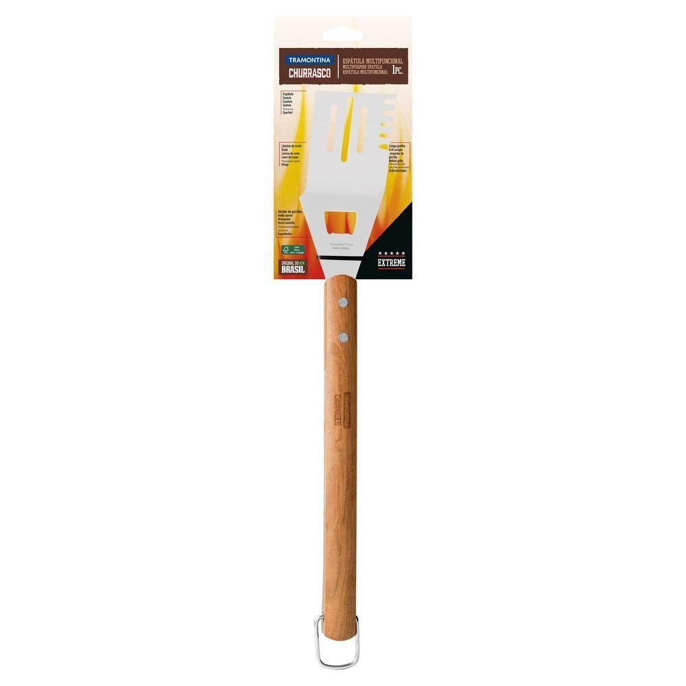 Espátula Multifuncional Tramontina Churrasco Com Lâmina Em Aço Inox E Cabo De Madeira 47,8 Cm TramontinaEspátula Multifuncional Tramontina Churrasco com Lâmina em Aço Inox e Cabo de Madeira 47,8 cm Tramontina -Espátula Multifuncional Tramontina Churrasco com Lâmina em Aço Inox e Cabo de Madeira 47,8 cmCheirinho de churrasco é uma das melhores coisas que existem. E se vier acompanhado de praticidade fica ainda melhor! Por esse motivo para preparar e servir o seu, da melhor maneira, a Espátula Tramontina Churrasco com Lâmina em Aço Inox e Cabo de Madeira 47,8 cm é a escolha perfeita! Com lâmina em aço inox e cabo longo de madeira, ela vai lhe garantir resistência e durabilidade, além de facilidade e seguranca no uso. Sirva a família e amigos com praticidade e estilo, e garanta elogios e sorrisos com este item essencial para o seu churrasco!Informações GeraisLâmina de aço inox com lâmina de corte, abridor de garrafas e limpa grelha. Cabos de madeira.Recomendações de UsoAntes da primeira utilização, lave bem as peças e seque-as. Tenha cuidado ao manusear produtos cortantes e perfurantes e mantenha-os fora do alcance das crianças. Para maior durabilidade dos produtos recomenda-se secar bem antes de guardar. Para descarte dos produtos e embalagens siga as orientações de reciclagem vigentes.Características Gerais do Produto: - Cor: Madeira Garantia: - 3 Meses