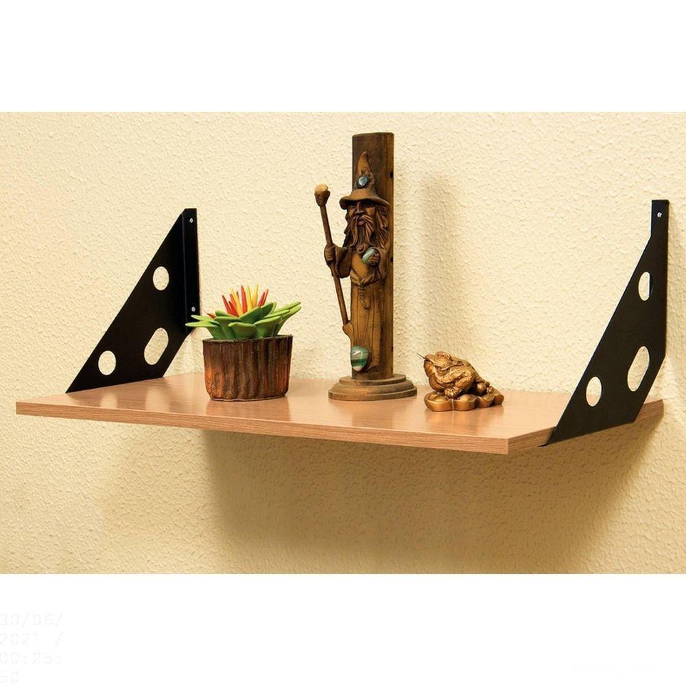 Prateleira Elite Em Madeira Pinus Com Acabamento Tabaco E Suporte Metalico 400x250x15 Mm