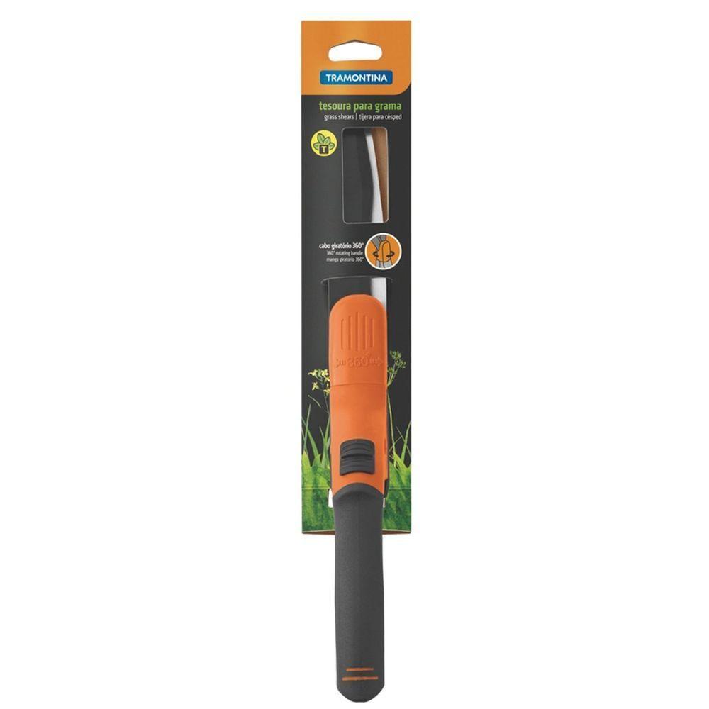 Tesoura Para Grama Tramontina Em Aço Com Cabo Plástico TramontinaTesoura para Grama Tramontina em Aço com Cabo Plástico Tramontina -Um canteiro ou gramado bem aparado é lindo, não é mesmo? E para deixá-los perfeitos é necessário aparar aqueles cantinhos onde o cortador de grama não chega. Foi pensando nisso que trouxemos para você a Tesoura para Grama Tramontina em Aço com Cabo Plástico que permite cortes mais precisos para um acabamento perfeito. Essa ferramenta é leve e fácil de manusear para que você consiga finalizar o trabalho com um menor esforço. Agora sua casa vai ter aquele jardim impecável que você sempre sonhou.- A tesoura é temperada em todo o corpo da peça, proporcionando maior resistência e menor desgaste durante o uso.- Lâminas fabricadas em aço carbono especial de alta qualidade.- Cabo giratório em 360°, com 16 posições de corte que permitem fazer qualquer contorno.- Base de apoio com regulagem de altura, proporcionando um corte uniforme a grama.- Cabos em plástico leves e ergonômicos, proporcionando conforto durante o uso.- Botão de trava que possibilita operar a tesoura com uma só mão.- Possui uma trava de segurança para fechamento das lâminas quando a tesoura não está em uso.- Leve e prática no uso.Observações- A tesoura é própria para acabamentos de canteiros e para aparar as bordas do gramado.- Conservar a ferramenta limpa, secando-a depois de lavá-la. Aplique fina camada de óleo sobre as lâminas e articulações.- Cuidado: A lâmina é afiada. O contato pode resultar lesões. Manuseie com cuidado e mantenha fora de alcançe das crianças.- Para descarte dos produtos e embalagens siga as orientações de reciclagem vigentes.Características GeraisEAN137891117018438DUN1417891117018435NCM8201.50.00Peso Líquido0,2520 kg.Peso Bruto0,2650 kg.Metragem0,002025 m³.Dimensões Embalagem (Compr. X Larg. X Alt.)400x 64x 121 mm.Dimensões Produto (Compr. X Larg. X Alt.)340x 25x 125 mm.Cor 1FFA500 HexaCaracterísticas Gerais do Produto:Garantia: - 1 Ano