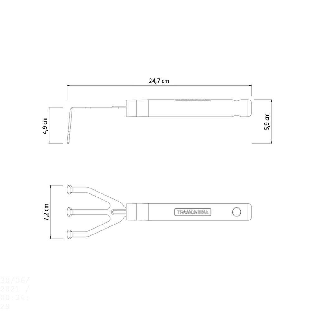 Ancinho Metálico Com 3 Dentes Para Jardinagem Tramontina Com Cabo De Madeira TramontinaAncinho Metálico com 3 Dentes para Jardinagem Tramontina com Cabo de Madeira Tramontina -Nada como possuir utensílios práticos para as tarefas no pátio da nossa casa. Com o ancinho metálico com 3 dentes para jardinagem Tramontina com cabo de madeira o conforto e cuidado estão garantidos! Perfeito para atividades de arar o solo, afofar a terra e remover detritos, ele é uma peça desenvolvida especialmente para levar prazer para a jardinagem. É uma peça em metal com três dentes e cabo de madeira que dá mais comodidade e bem-estar no manuseio.Orientações- Fabricado em aço carbono especial de alta qualidade.- Recebe pintura eletrostática a pó, que tem uma melhor apresentação visual e maior proteção contra oxidação.- Possui 3 dentes.- O cabo desta ferramenta, além de possuir ótima resistência, é produzido com madeira de origem renovável.- Cabo com acabamento envernizado, para um melhor acabamento e apresentação do produto. A camada protetora em verniz incolor realça sua tonalidade, concedendo brilho e um toque mais liso ao produto.- Produto leve, que gera menos esforço físico do usuário e torna o trabalho mais prazeroso.Características GeraisEAN137891117000235DUN1417891117000232NCM8201.30.00Peso Líquido0,1210 kg.Peso Bruto0,1310 kg.Metragem0,001298 m³.Dimensões Embalagem (Compr. X Larg. X Alt.)244x 76x 70 mm.Dimensões Produto (Compr. X Larg. X Alt.)247x 72x 59 mm.Cor 1FFA500 HexaObservações- O ancinho é utilizado na agricultura, horticultura, fruticultura e jardinagem para serviços gerais, principalmente para afofar a terra e remover detritos.- Para descarte dos produtos e embalagens siga as orientações de reciclagem vigentes.Características Gerais do Produto:Garantia: - 1 Ano