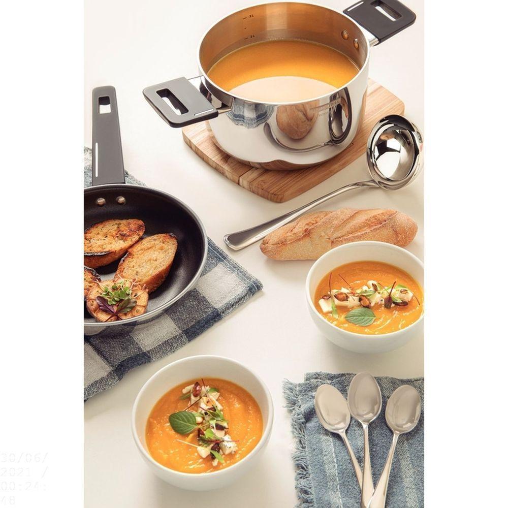 Concha Para Feijão Mônaco Em Aço Inox Acabamento Alto Brilho Com Detalhes No Cabo