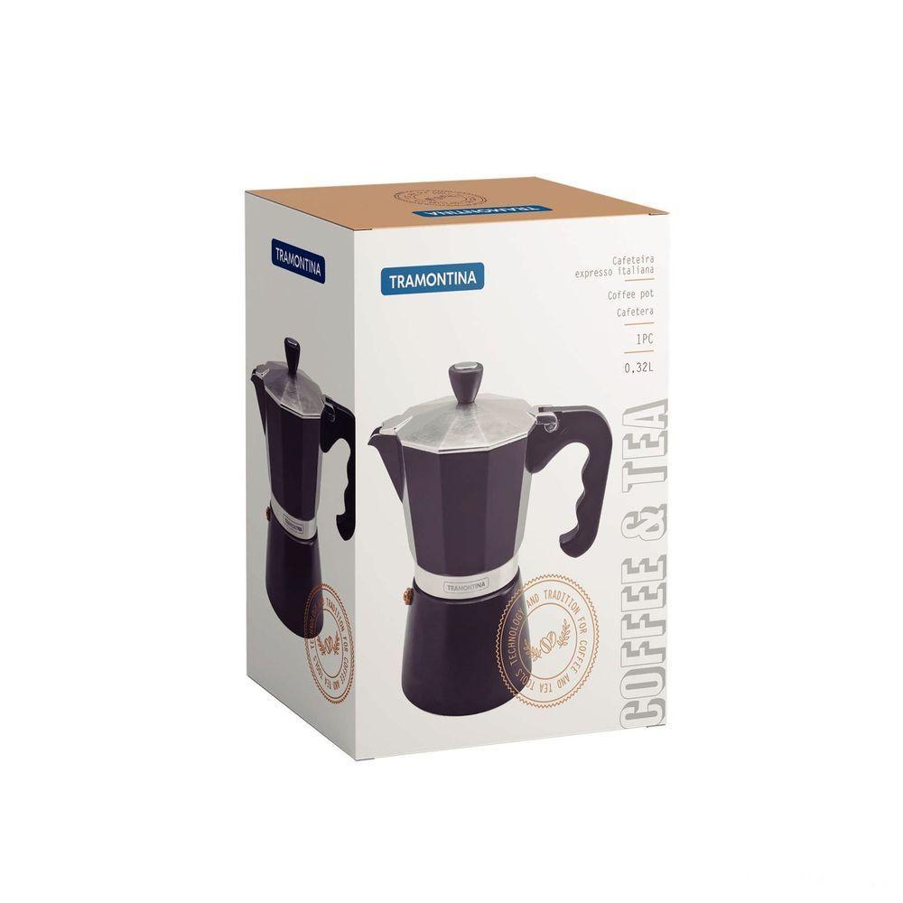 Cafeteira Expresso Italiana Tramontina Em Alumínio Preto Com Cabo Em Nylon 320 Ml Tramontina