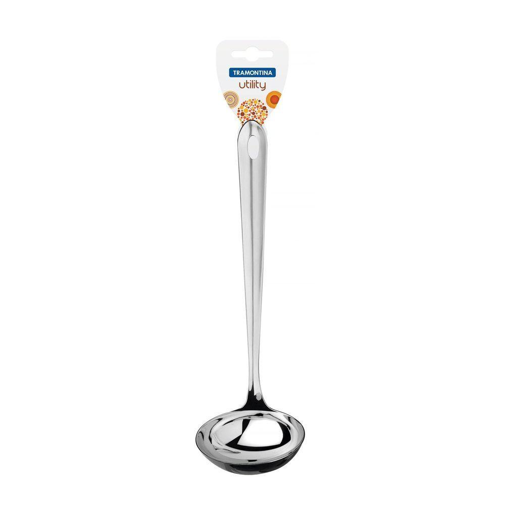 Concha Terrina Tramontina Utility Em Aço Inox TramontinaConcha Terrina Tramontina Utility em Aço Inox Tramontina -Seja para apreciar uma bela sopa, um delicioso feijão ou preparar aquele caldo cheio de aromas e sabores a Concha Terrina Tramontina em Aço Inox da linha Utility é a escolha perfeita, pois combina com qualquer ambiente. Totalmente produzida em aço inox, não solta resíduos nos alimentos e pode ser levada à máquina de lavar diariamente mantendo sempre a beleza de seu acabamento em brilho e sem danificar sua estrutura. É a Tramontina com você em todos os momentos!OrientaçõesTotalmente feita de aço inox, altamente durável, mantém as características , preservando a beleza, a higiene e a durabilidade do material.Própria para diário combina com qualquer ambiente.Acabamento brilho.Pode ser lavada diariamente na máquina de lavar louças.ObservaçõesDurante a lavagem, use apenas sabão ou detergente e uma esponja macia. Outros tipos de produtos, como palha de aço, poderão riscar ou prejudicar o brilho dos talheres.Enxágue bem cada peça a fim de remover totalmente os resíduos dos produtos de limpeza, pois, por serem abrasivos, podem prejudicar o inox.Sempre que possível, use água quente, pois renova o brilho do talher.Após a lavagem, enxugue imediatamente os talheres, caso contrário, as substâncias químicas da água (cloro) poderão causar manchas.Evite atrito entre os talheres durante o processo de lavagem e no armazenamento, para mantê-los sem riscos.Evite o contato das peças com superfícies quentes. Elas provocam a descoloração do produto.Não guarde os talheres em locais úmidos. A umidade também provoca manchas.Ao usar a lava-louça, recomendamos retirar os talheres logo que tenha terminado o ciclo enxaguar, a fim de que sejam secados manualmente.Características GeraisEAN137891116026083DUN1417891116026080NCM8215.99.10Peso Líquido0,1370 kg.Peso Bruto0,1390 kg.Metragem0,000010 m³.Dimensões Embalagem (Compr. X Larg. X Alt.)1x 1x 1 mm.Dimensões Produto (Compr. X Larg. X Alt.)300x 93x 69 mm.Capacidade0,10 l.Espessura2,0 mm.Características Gerais do Produto:Garantia: - 1 Ano