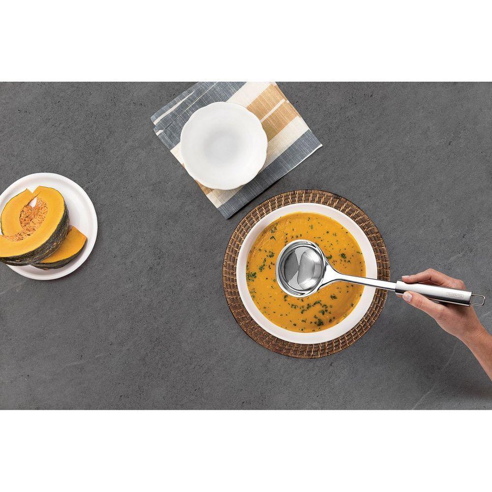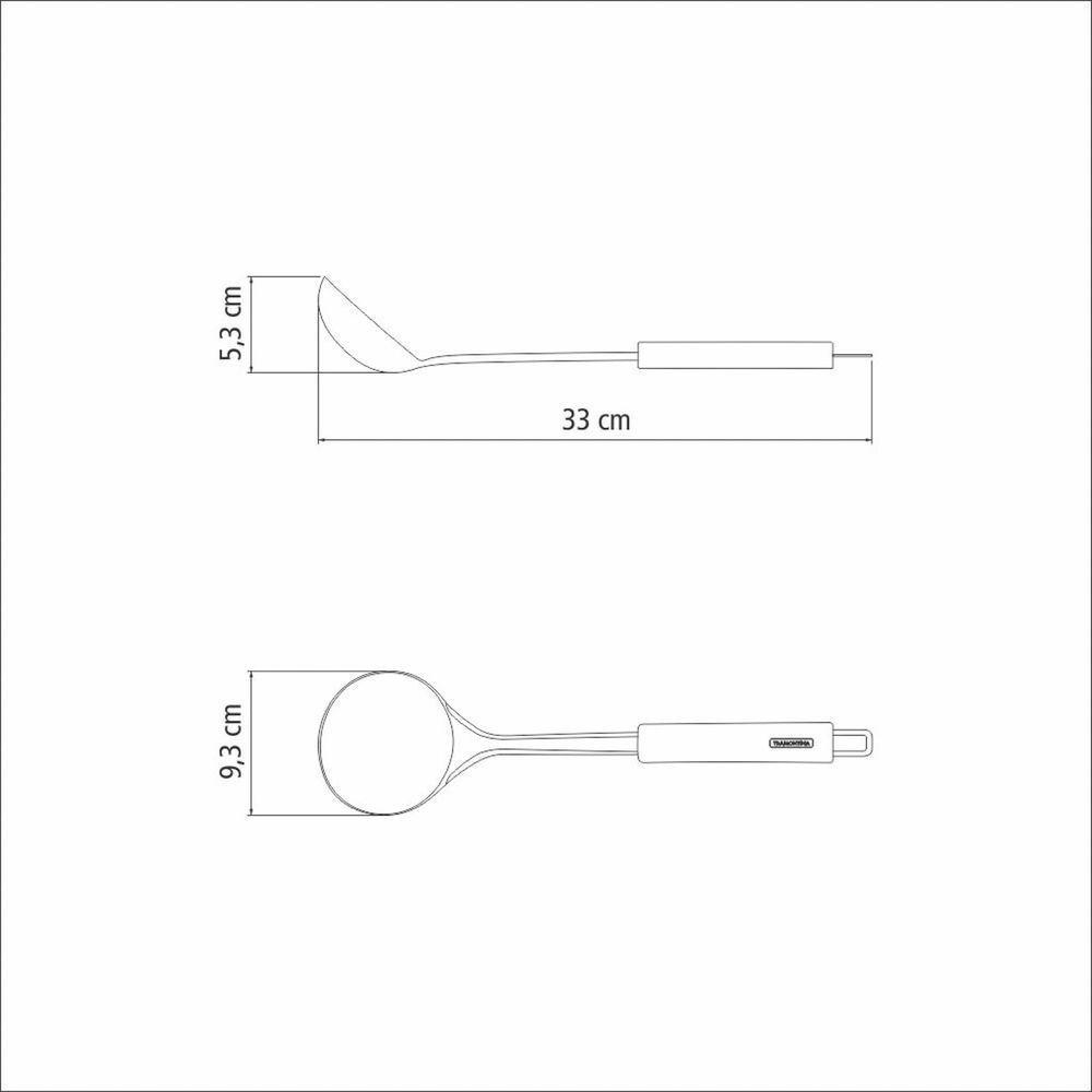 Concha Terrina Tramontina Marffim Em Aço Inox TramontinaConcha Terrina Tramontina Marffim em Aço Inox Tramontina -Sirva sopas, cremes e demais delícias, com a facilidade e praticidade da Concha Terrina Tramontina Marffim em Aço Inox. A peça é feita totalmente de aço inox e apresenta alta durabilidade e resistência, além disso, pode ser levada ao lava-louças sem comprometer o seu material. Suas refeições muito mais perfeitas com a funcionalidade e qualidade desta peça.OrientaçõesTotalmente feita de aço inox, por isso não solta nenhum resíduo nos alimentos, mantendo-os saudáveis.Altamente durável, mantém suas características , preservando a beleza, a higiene e a durabilidade do material.Pode ser lavada diariamente na máquina de lavar louças.ObservaçõesUse apenas sabão ou detergente e uma esponja macia. Outros tipos de produto como palha de aço, poderão riscar ou prejudicar o brilho da peça.Enxágue cada item a fim de remover totalmente os resíduos dos produtos de limpeza, que, por serem abrasivos, podem danificar o inox.Sempre que possível, use água quente, pois renova o brilho da peça.Após a lavagem, enxugue imediatamente a peça, caso contrário, as substâncias químicas da água (cloro) poderão causar manchas.Evite atrito entre as peças durante o processo de lavagem e no armazenamento, para mantê-la sem riscos.Evite o contato do produto com superfícies quentes, pois elas provocam a descoloração do material.Não guarde a peça em locais úmidos. A umidade também provoca manchas.Características GeraisEAN137891116158005DUN1417891116158002NCM8215.99.10Peso Líquido0,1430 kg.Peso Bruto0,1550 kg.Metragem0,001882 m³.Dimensões Embalagem (Compr. X Larg. X Alt.)368x 93x 55 mm.Dimensões Produto (Compr. X Larg. X Alt.)330x 93x 53 mm.Características Gerais do Produto:Garantia: - 1 Ano