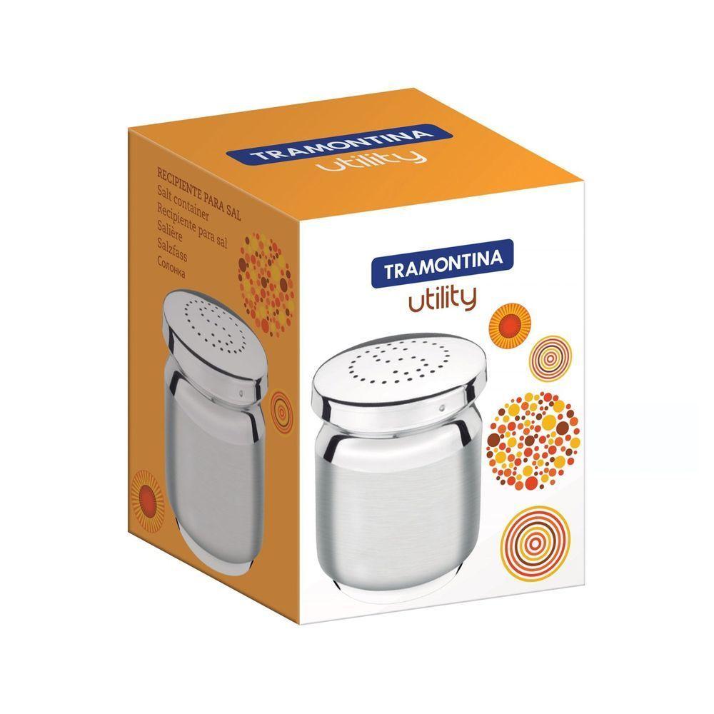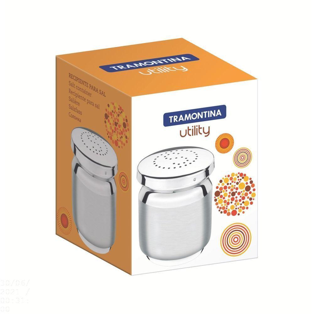 Saleiro Tramontina Utility Em Aço Inox Com Tampa TramontinaSaleiro Tramontina Utility em Aço Inox com Tampa Tramontina -Confundir o recipiente e colocar no alimento um tempero diferente do desejado é algo que acontece, concorda? Pois o produto que você está vendo ajudará a evitar qualquer infortúnio. Este Saleiro totalmente em Aço Inox com tampa perfurada no formato de S, além de facilitar a saída do ingrediente, já mostra o que contém no recipiente. Além disso, é de fácil limpeza por seu formato sem cantos e, se assim for do seu desejo, pode ser levado diariamente à máquina de lava-louças. Por seu acabamento fosco e com detalhes em brilho, dá ao sal, ainda, uma característica de nobreza. Ou seja, é ideal para utilizar em reuniões sociais ou momentos de maior requinte.OrientaçõesTotalmente feito de aço inox, altamente durável, mantém suas características , preservando a beleza, a higiene e a durabilidade do material.Seu desenho limpo e sem cantos torna a limpeza muito mais fácil.Acabamento fosco com detalhes em brilho deixa o produto mais nobre.A tampa é perfurada e os furos formam um S, permitindo a saída do sal.Pode ser lavado diariamente na máquina de lavar louças.Características GeraisEAN137891116034606DUN1417891116034603NCM7323.93.00Peso Líquido0,0650 kg.Peso Bruto0,0950 kg.Metragem0,000510 m³.Dimensões Embalagem (Compr. X Larg. X Alt.)100x 85x 60 mm.Dimensões Produto (Compr. X Larg. X Alt.)55x 55x 69 mm.Diâmetro5,0 cm.Espessura0,6 mm.ObservaçõesUse apenas sabão ou detergente e uma esponja macia. Outros tipos de produto como palha de aço, poderão riscar ou prejudicar o brilho da peça.Enxágue cada item a fim de remover totalmente os resíduos dos produtos de limpeza, que, por serem abrasivos, podem danificar o inox.Sempre que possível, use água quente, pois renova o brilho da peça.Após a lavagem, enxugue imediatamente a peça, caso contrário, as substâncias químicas da água (cloro) poderão causar manchas.Evite atrito entre as peças durante o processo de lavagem e no armazenamento, para mantê-la sem riscos.Evite o contato do produto com superfícies quentes, pois elas provocam a descoloração do material.Não guarde a peça em locais úmidos. A umidade também provoca manchas.Características Gerais do Produto:Garantia: - 1 Ano