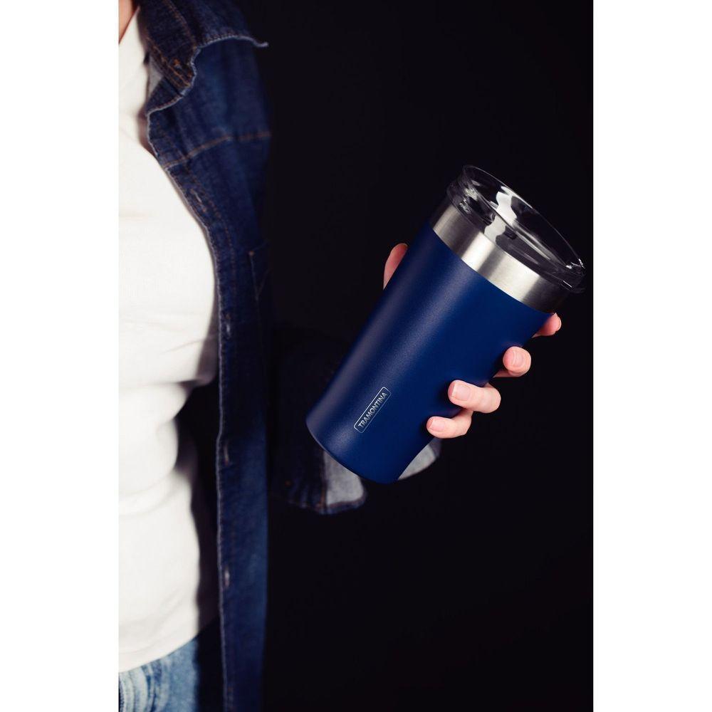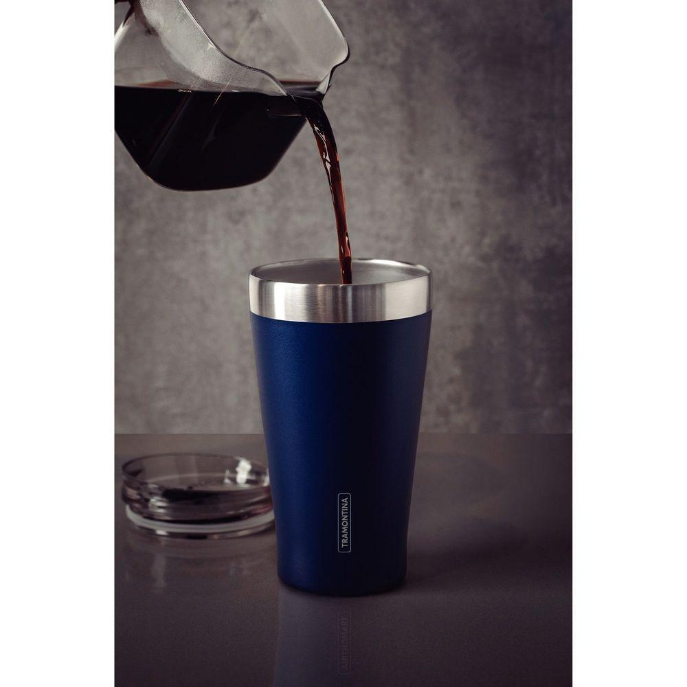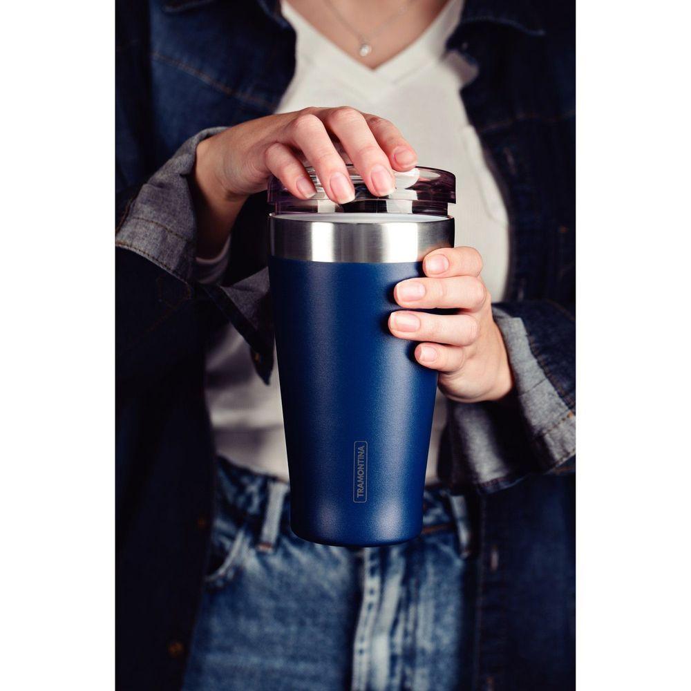 Copo Térmico Tramontina Exata Em Aço Inox Azul Com Tampa 550 Ml Tramontina
