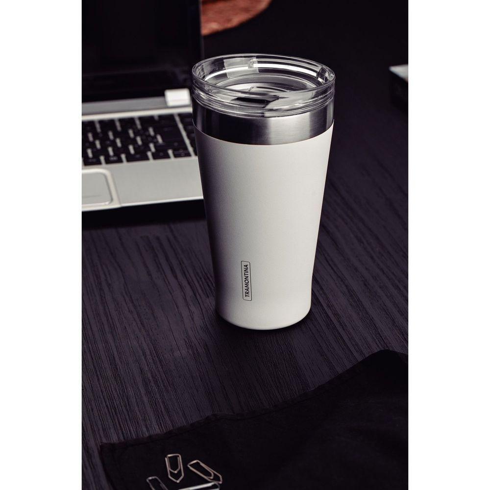 Copo Térmico Tramontina Exata Em Aço Inox Branco Com Tampa 550 Ml Tramontina